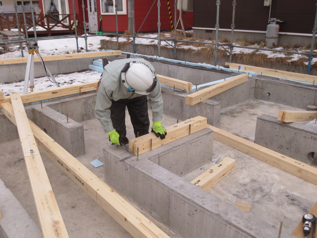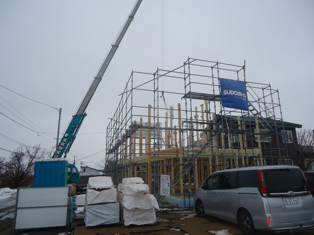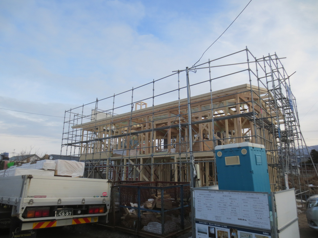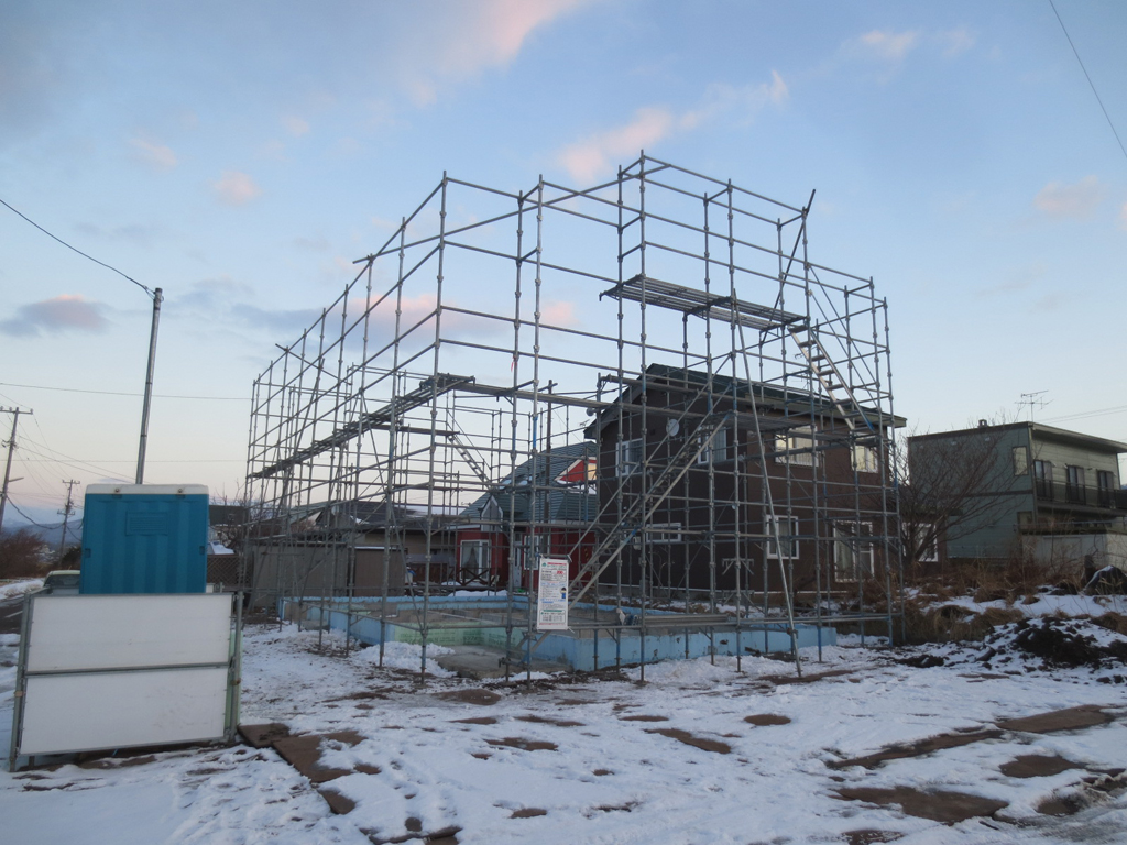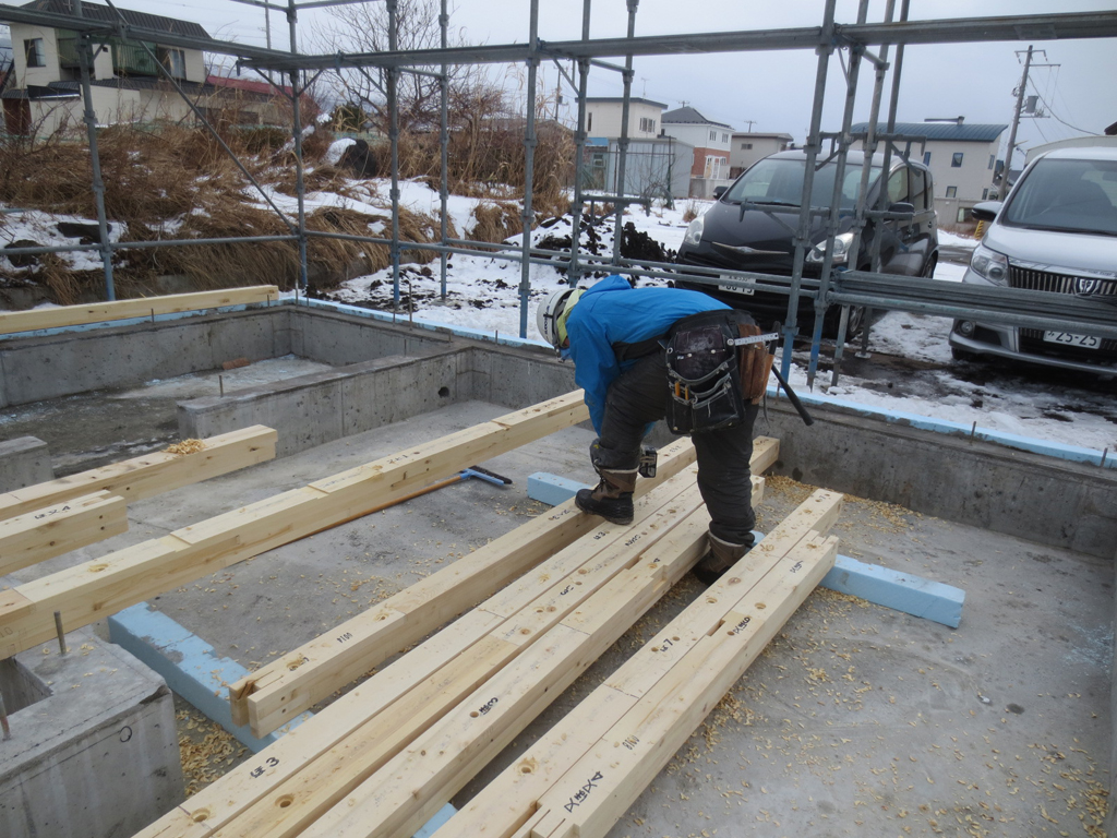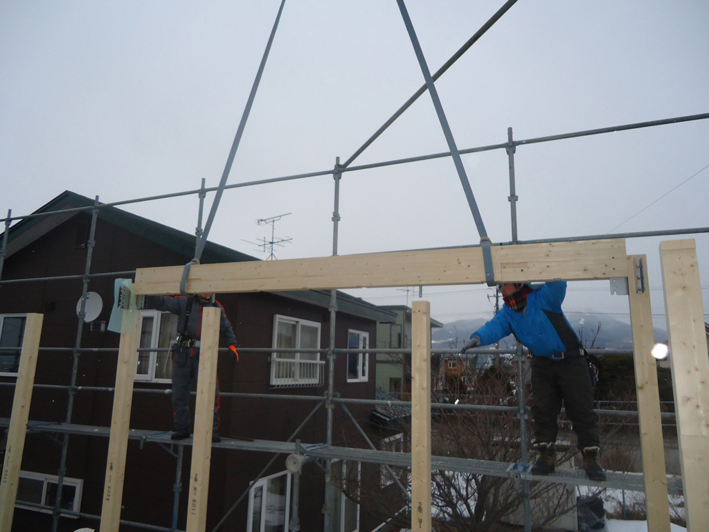 雪がちらついて寒いですが大工さんは弱音も吐かず頑張っております。