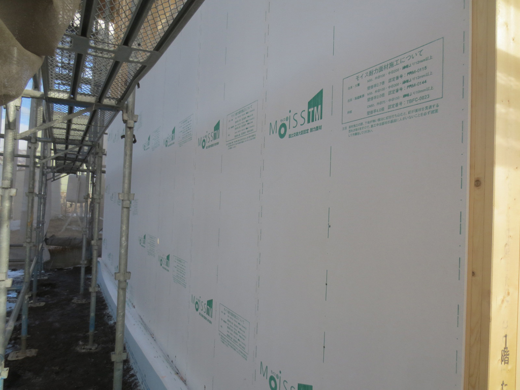 外壁の構造用パネルを貼り始めました。今回は外壁が杉板仕上げなので