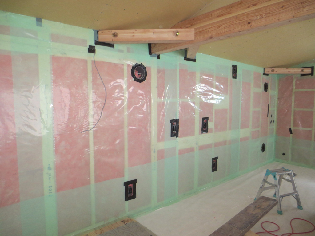 コンセントや換気扇の気密シートを破った部分はしっかり気密テープで補強します。