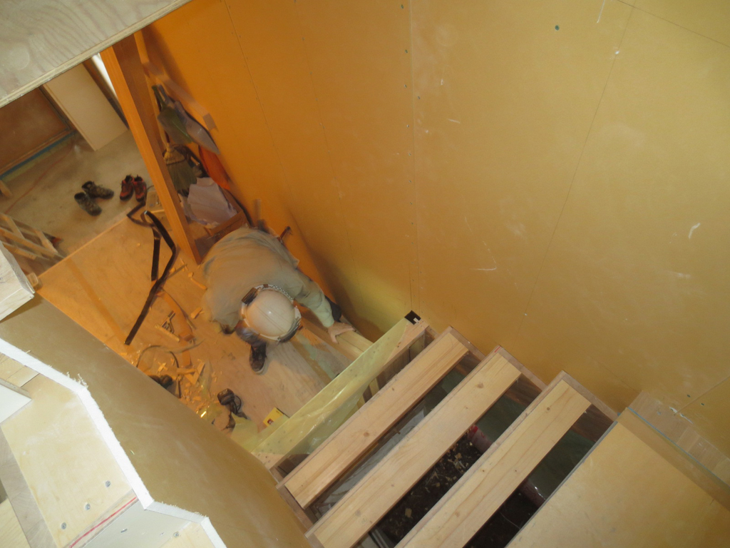 M越棟梁は木枠の取り付けが終わったら階段の造作です。階段造作は棟梁のお仕事なのです。
