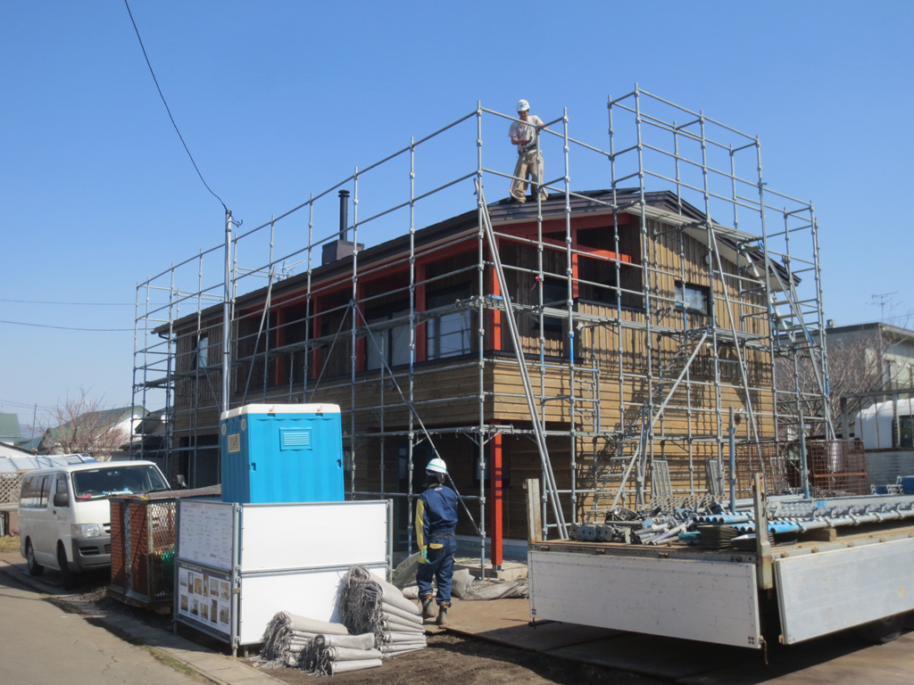 外部足場を架けて大工さんの乗り込みを待ちます!