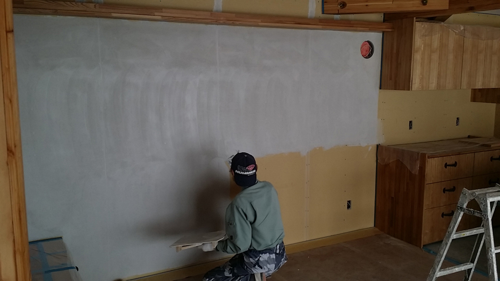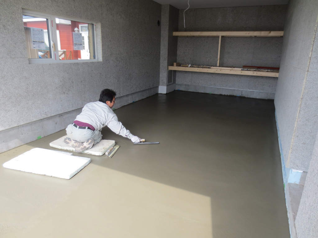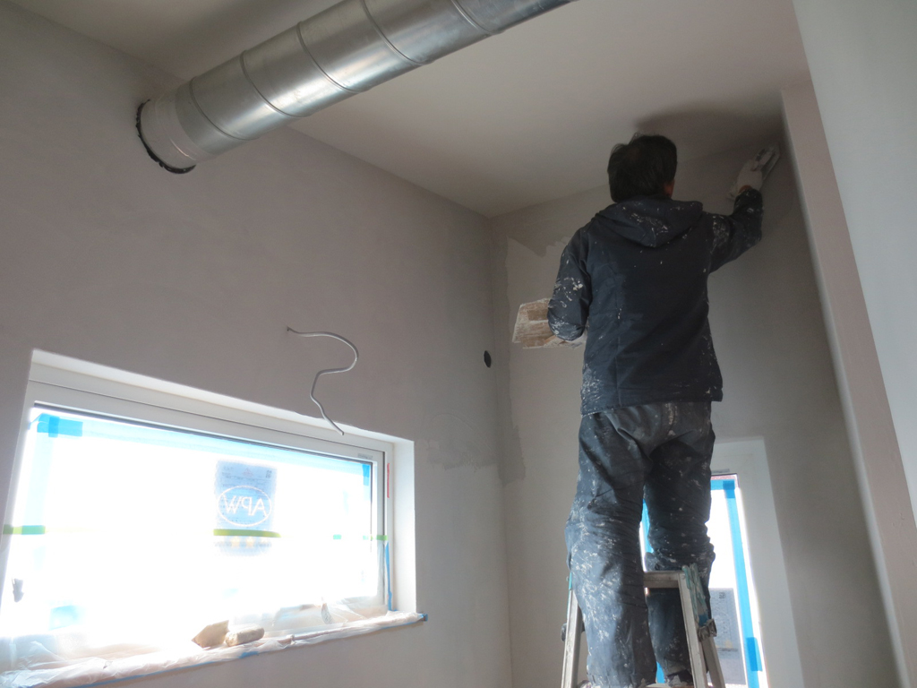左官屋さんが金コテを使ってボコボコ面を綺麗に均してくれます。