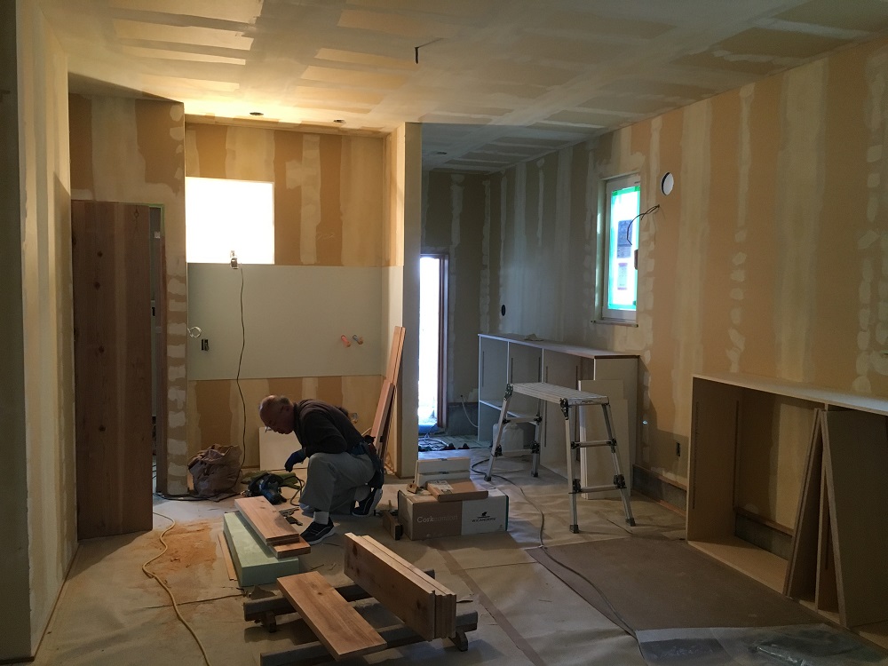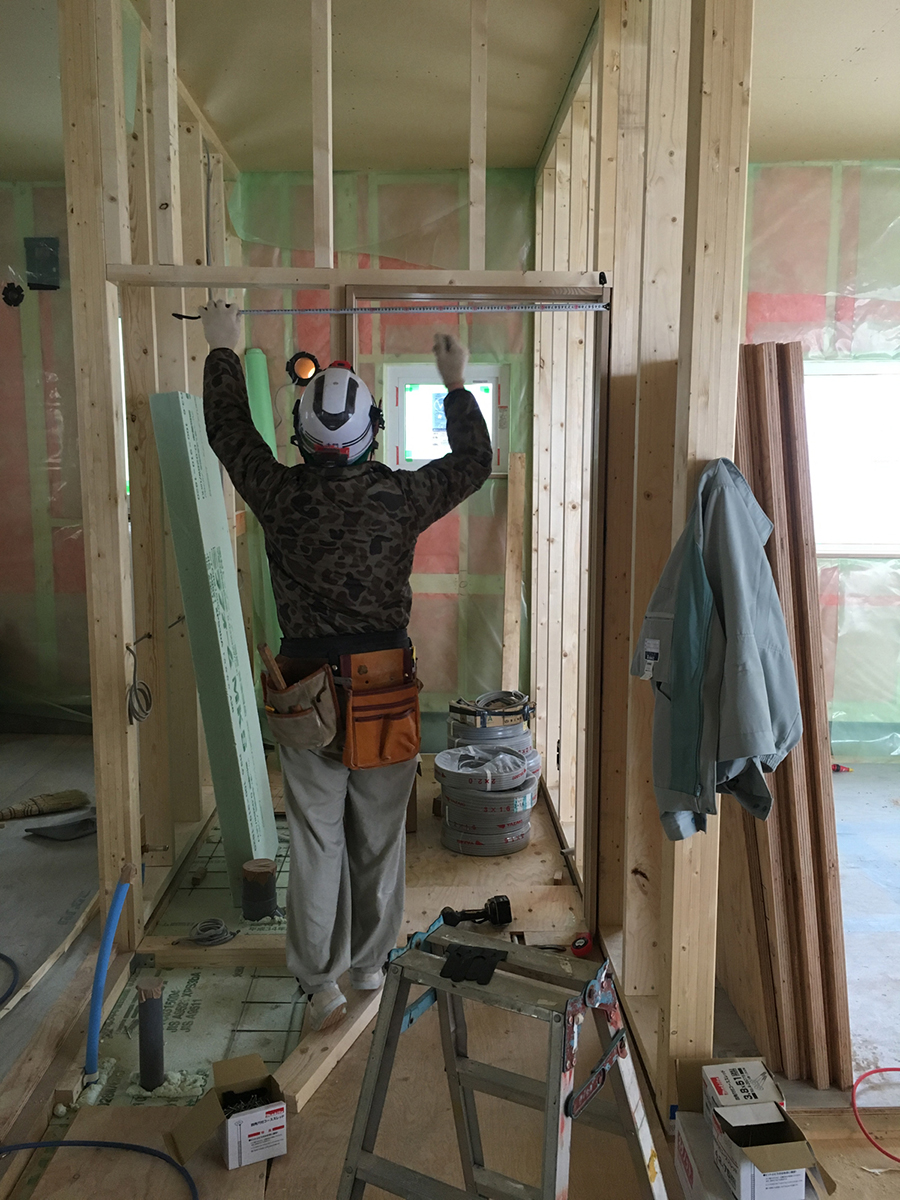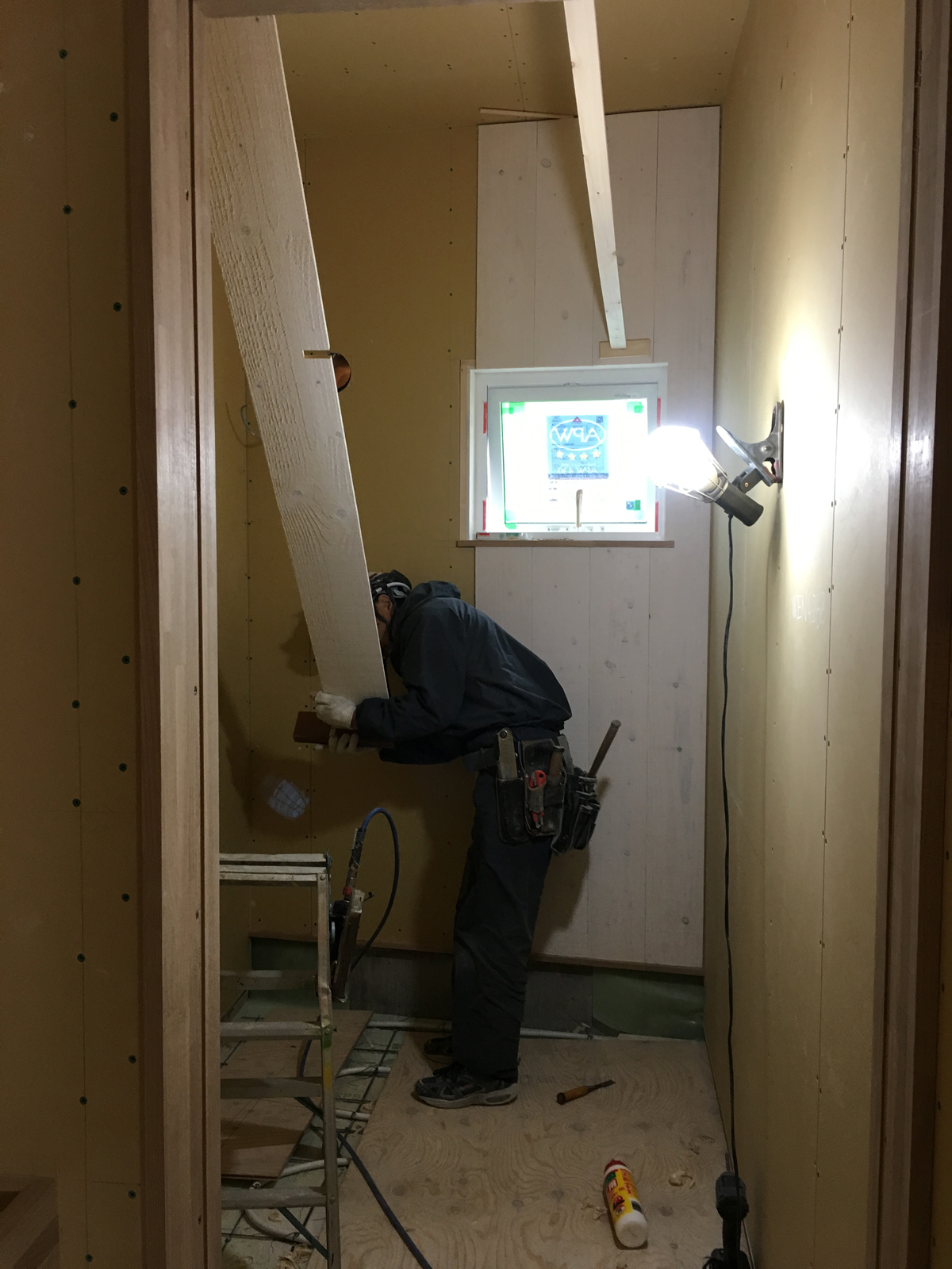 クロス屋さんの作業と干渉しないように合間をみながら作業を進めているのは、建具屋さんのKむらさん。