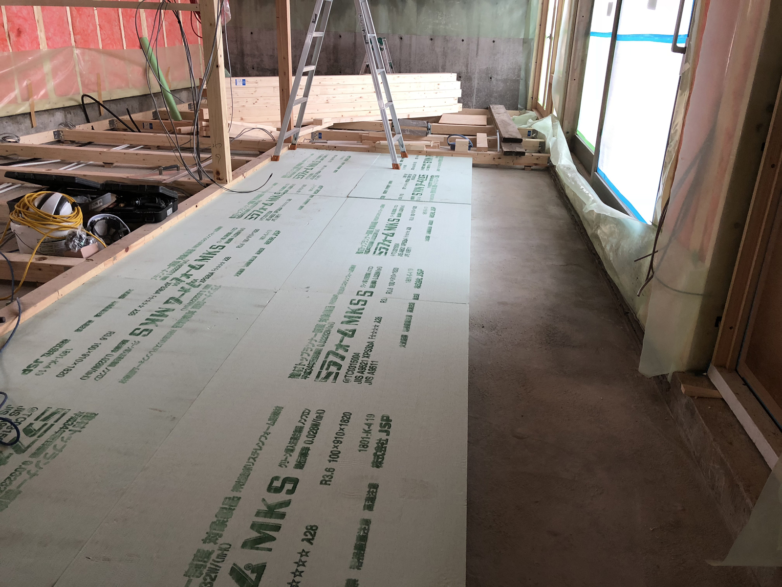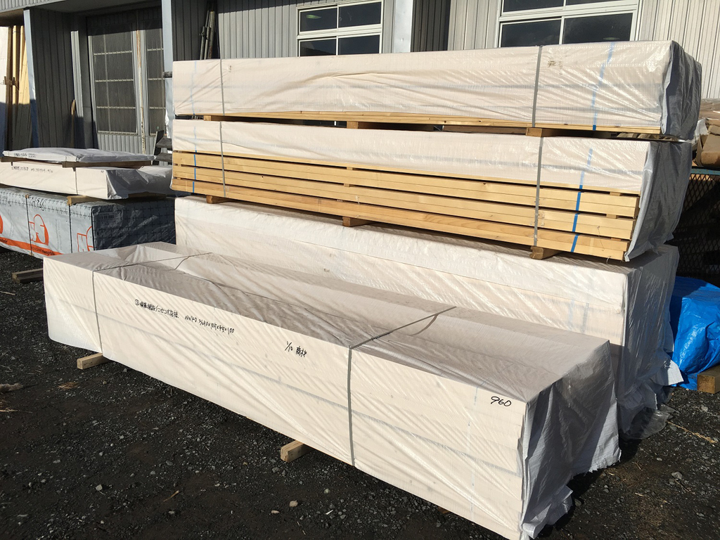現場に鉄筋と断熱材(基礎の)が搬入されました。