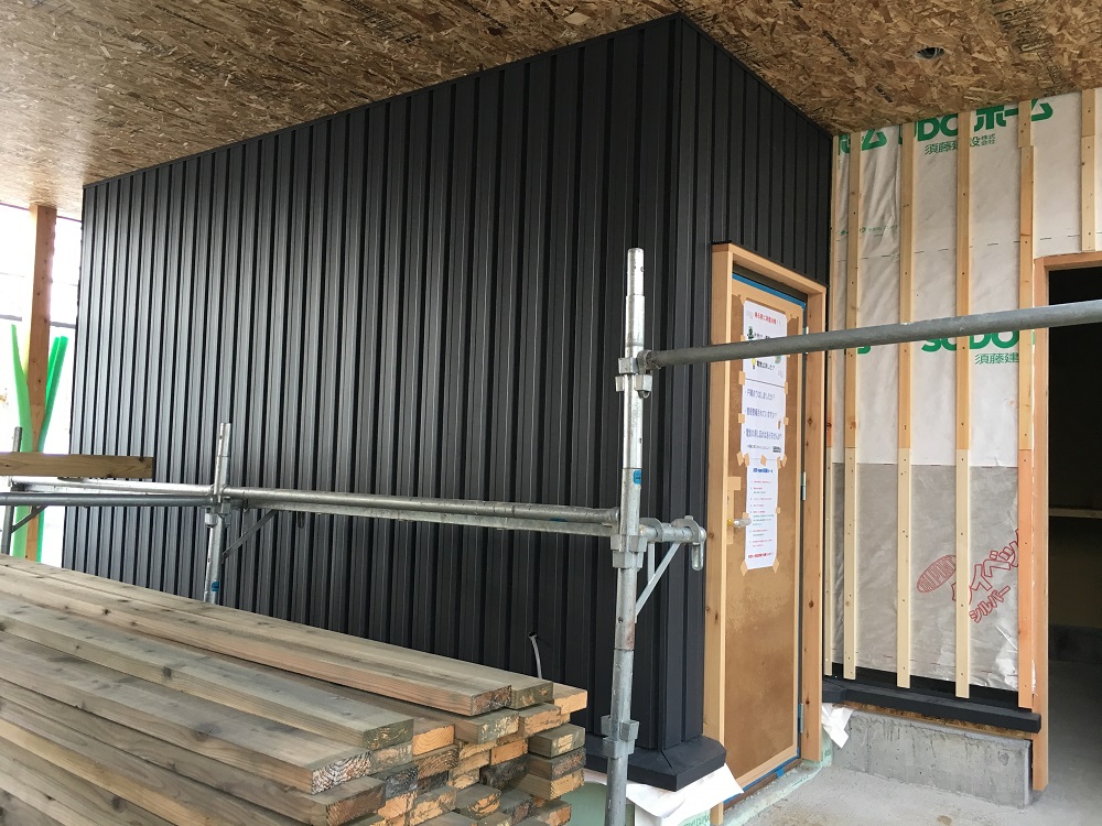 こちらはスチールブラック色のガルバリウム鋼板角波仕上げです。
