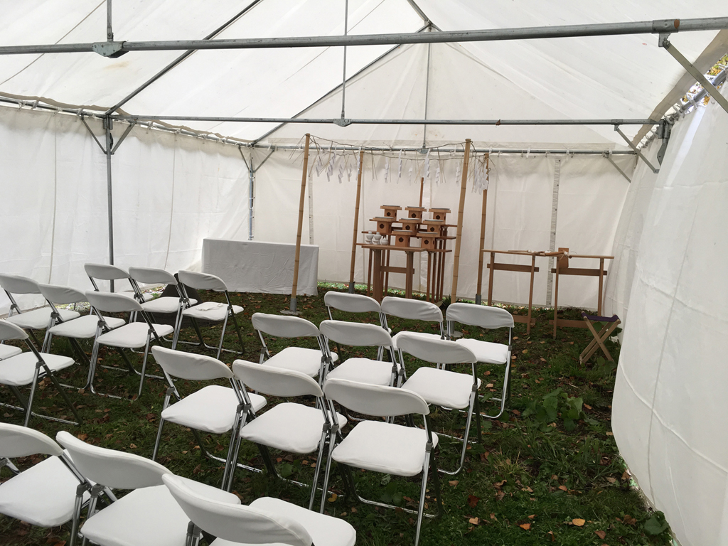 最後に、米・酒・塩・水を建物の隅と盛砂にまいて清めました。