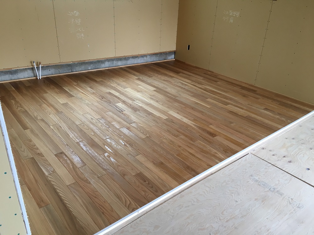 内部のフローリングはリボスのクリアで仕上りました=^_^=