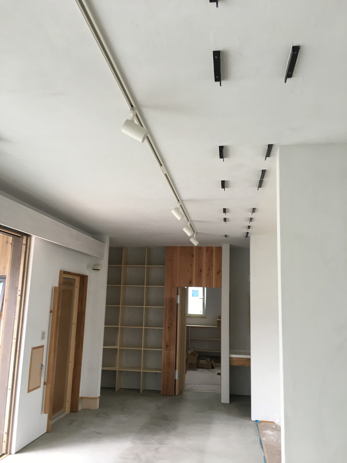 今回は壁の他に天井も塗り壁でしあげていますので、来られた際には是非、見て下さいね!