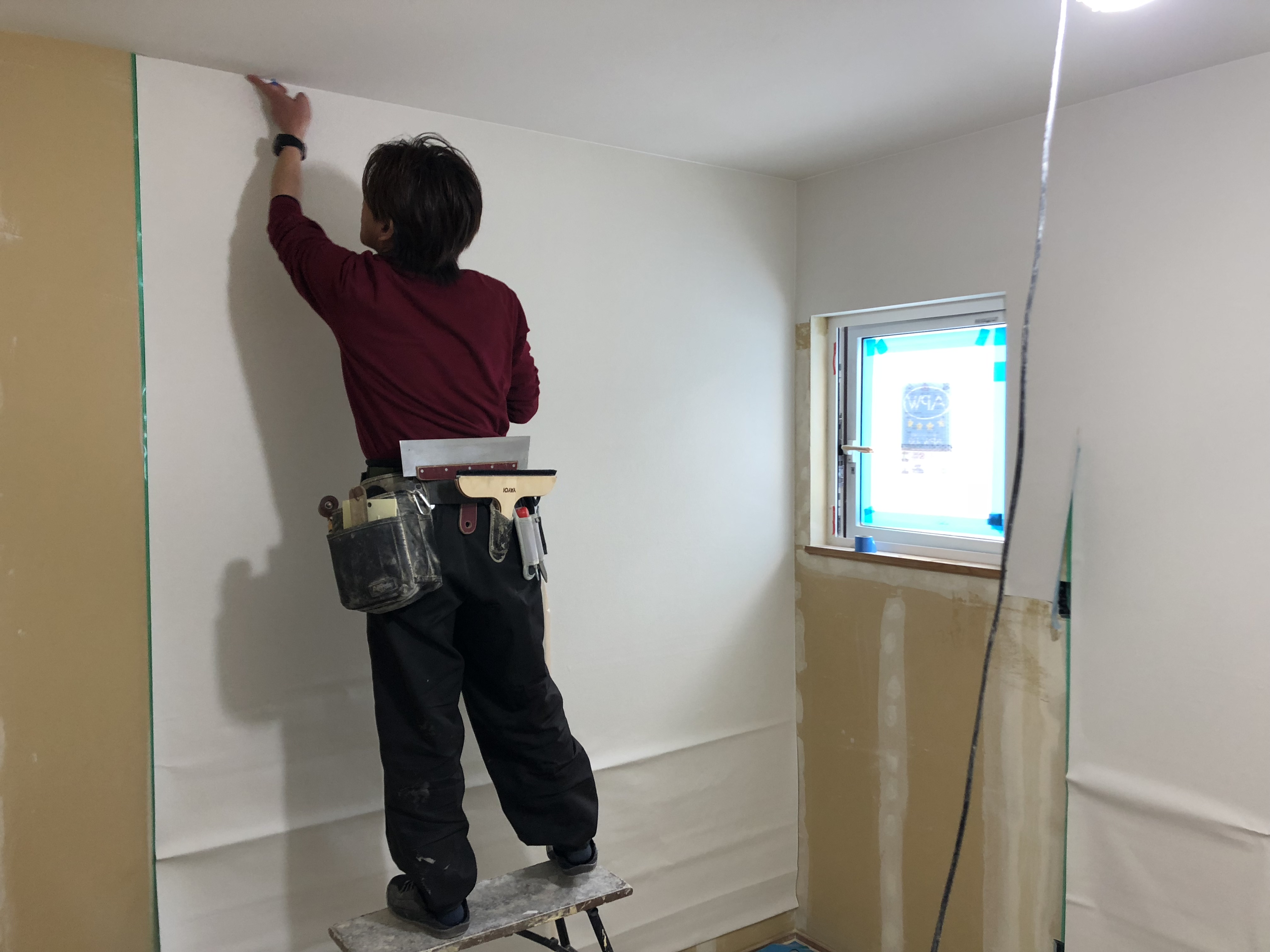 パテ処理後ペーパー掛けをし、クロスを張ります。