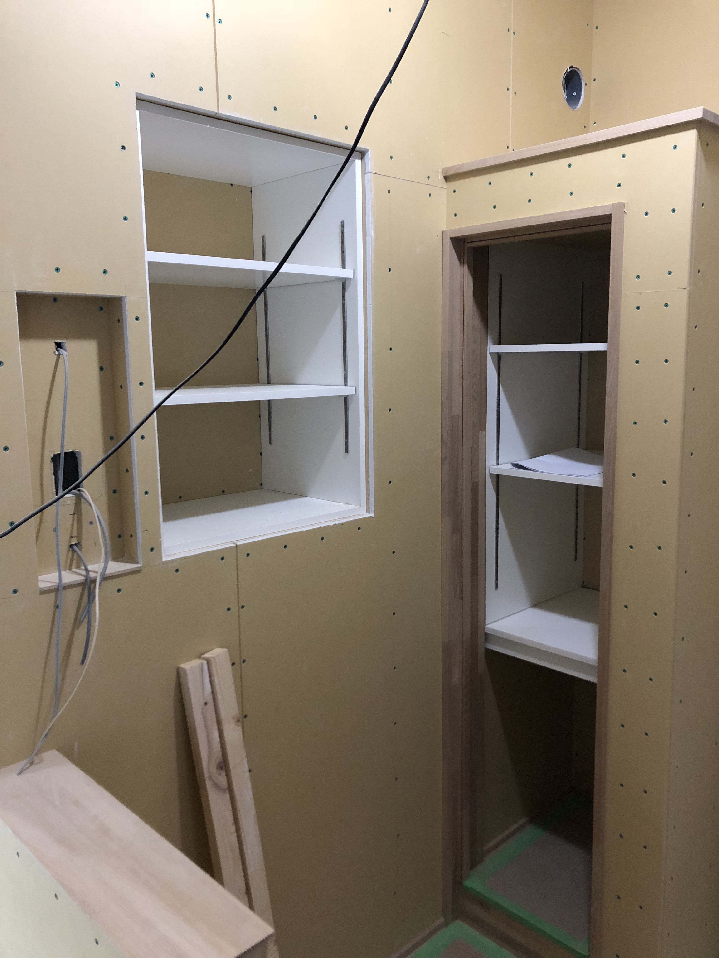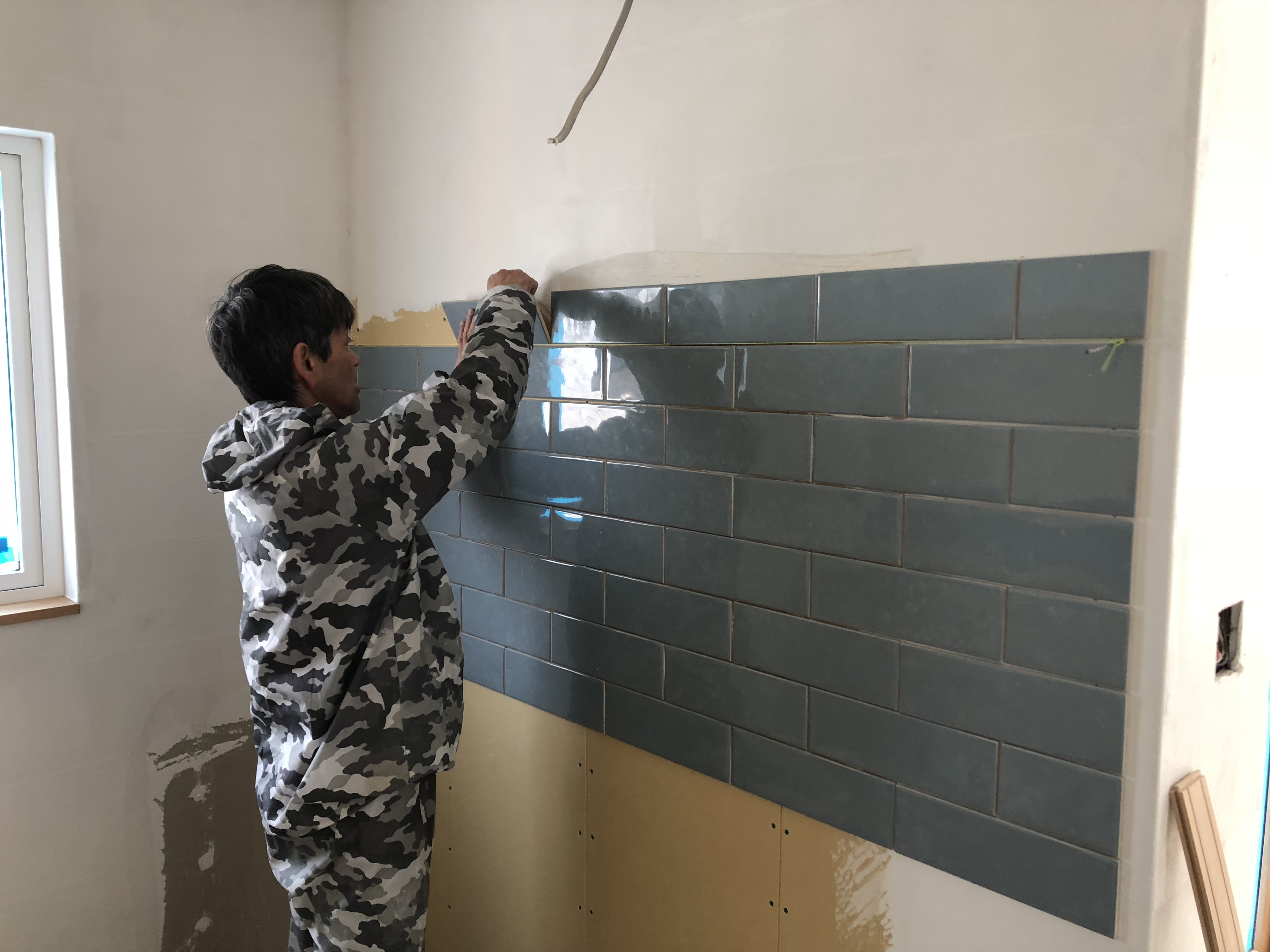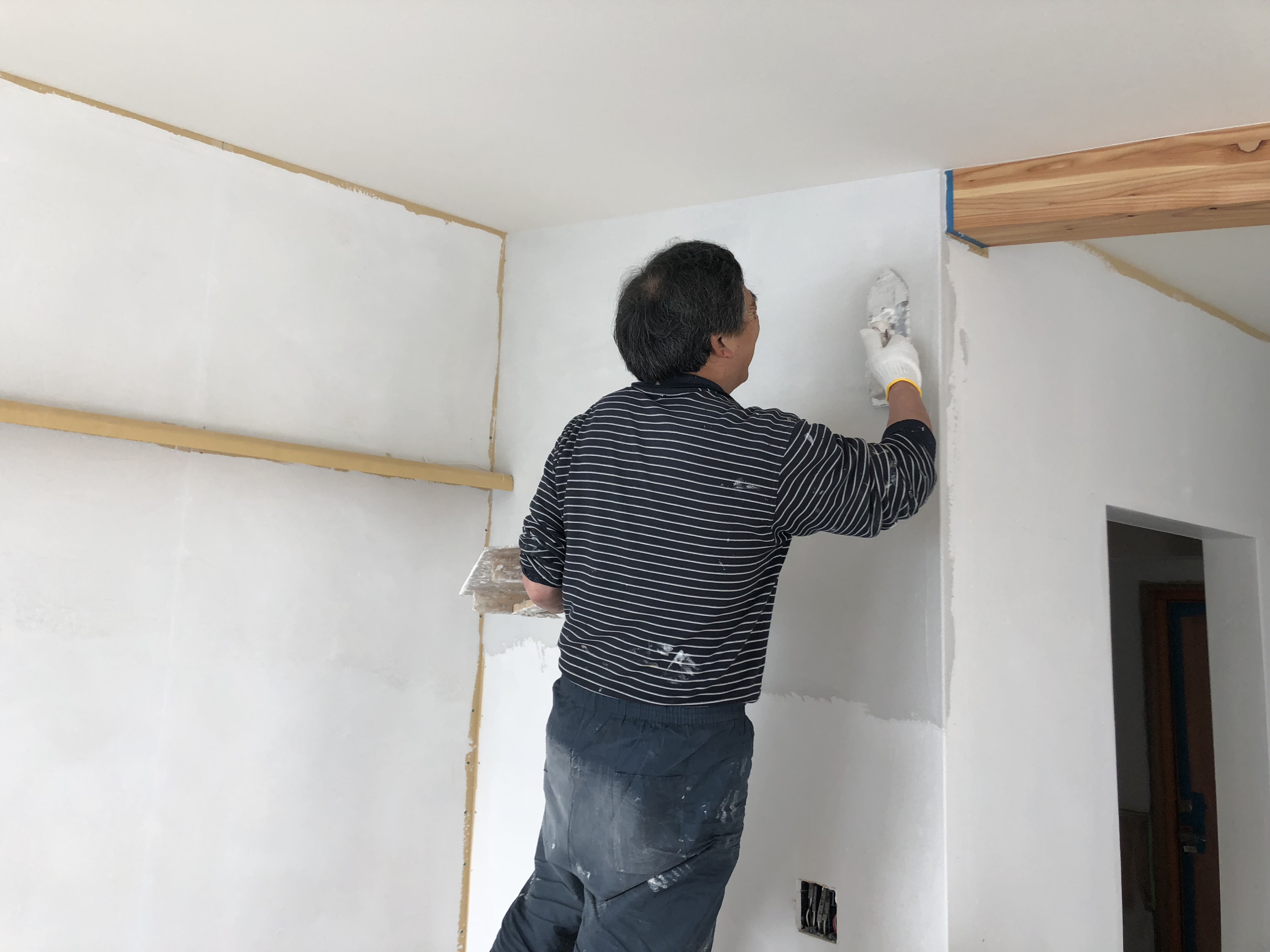 おなじみの珪藻土入塗壁やタイルを仕上げていきます。