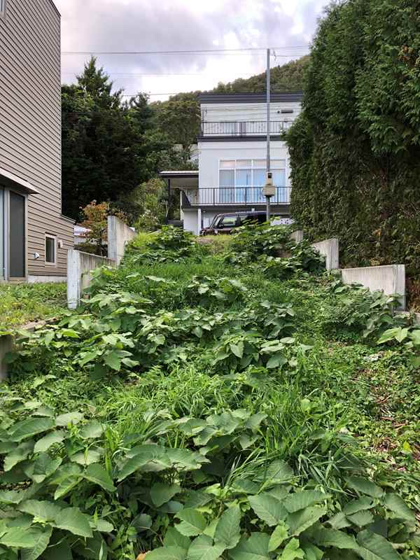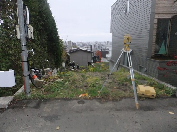 今回の計画地は、旗竿地でありながら、道路から敷地奥に向かって約5mほど傾斜しているんです。