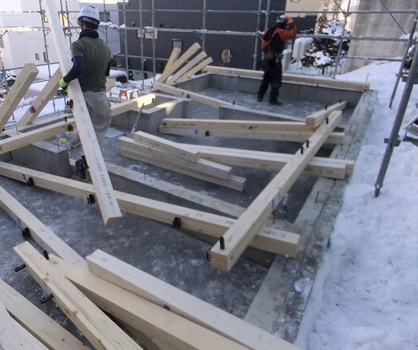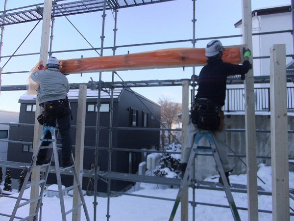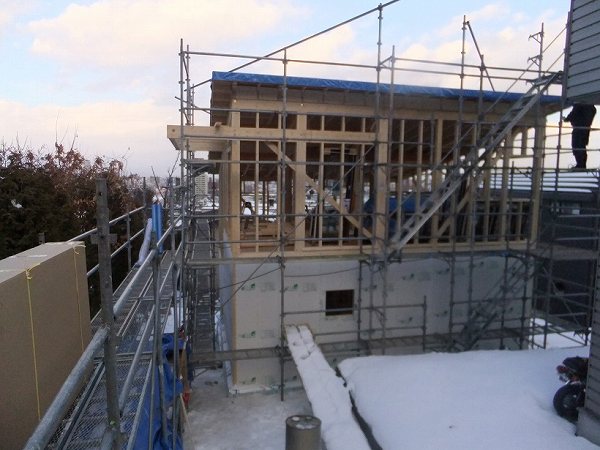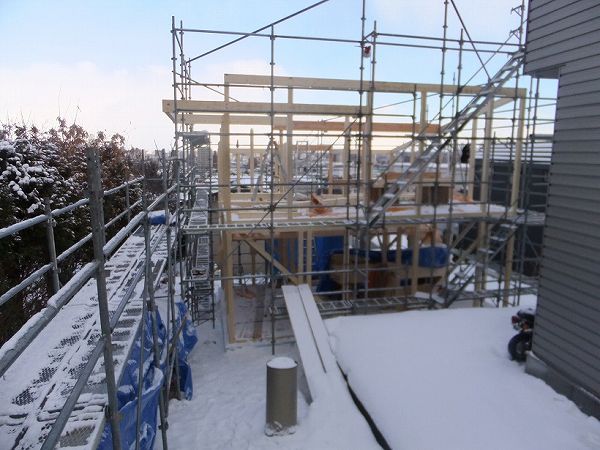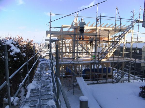 雪にも負けず大工さんの奮闘のおかげで順調に進んでいきます!