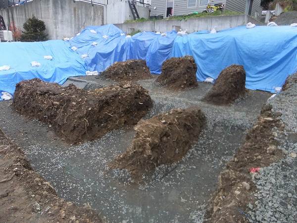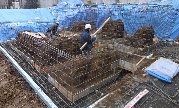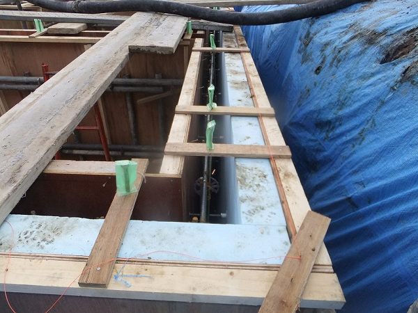 養生期間をおき、脱枠を行い、設備の埋設配管を行い、埋め戻しを行います。