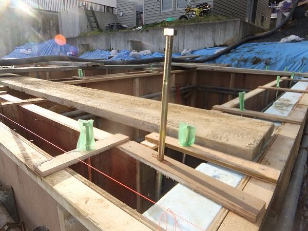 基礎と土台をつなぐアンカーボルトもしっかりとセットされています。