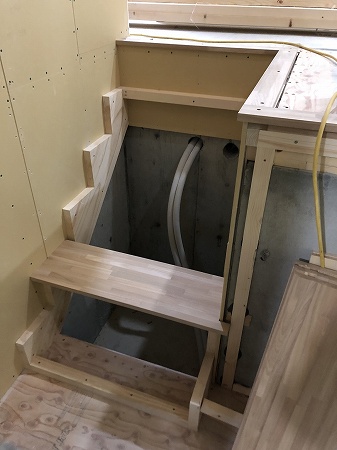壁、天井の仕上げが終わると電気・設備機器の取付です。