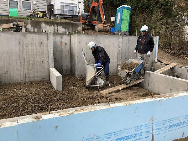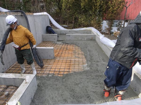最後に土間コンクリートを打設し、基礎工事完了です!