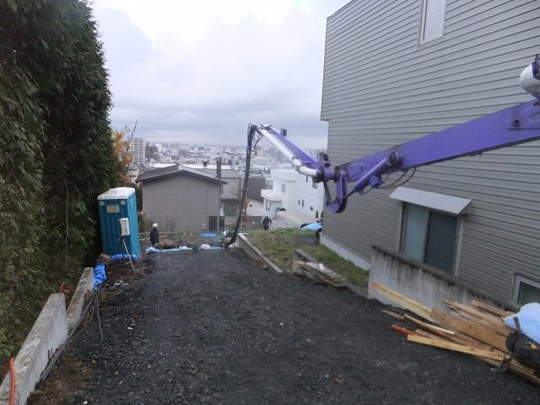 旗竿地なので材料の搬入に一苦労ですが順調に進んでいます(^ー^)b