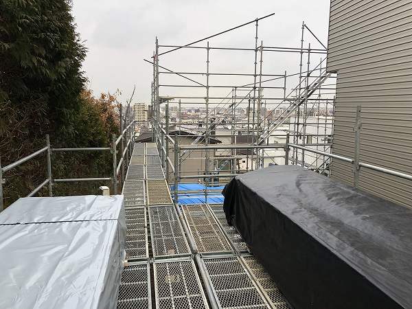 現場がスムーズに進むように足場でSANBASHIを架けました!