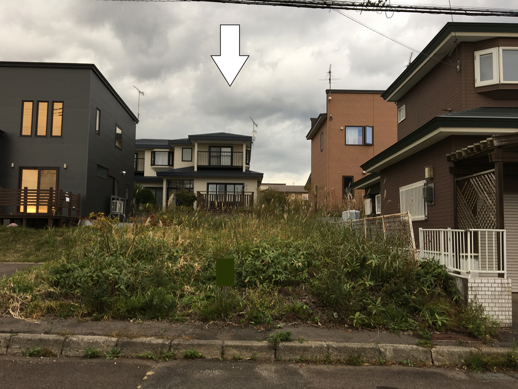 南道路に接道する南北に奥行があり奥に向かって高低差のある約55坪の計画地です。