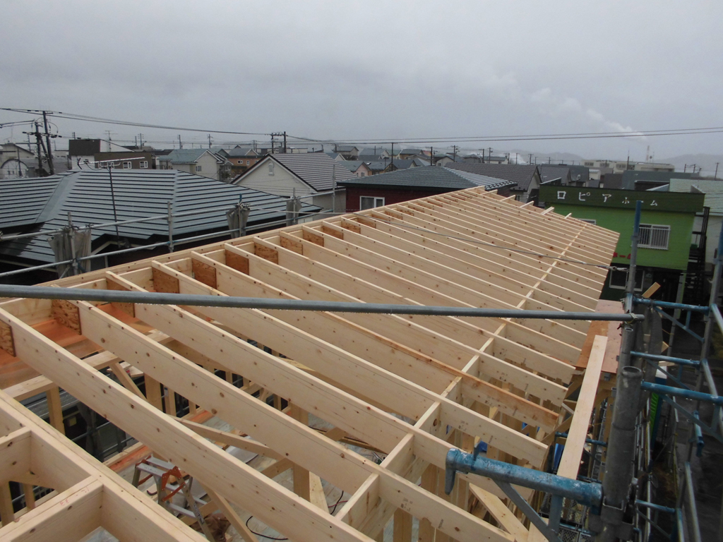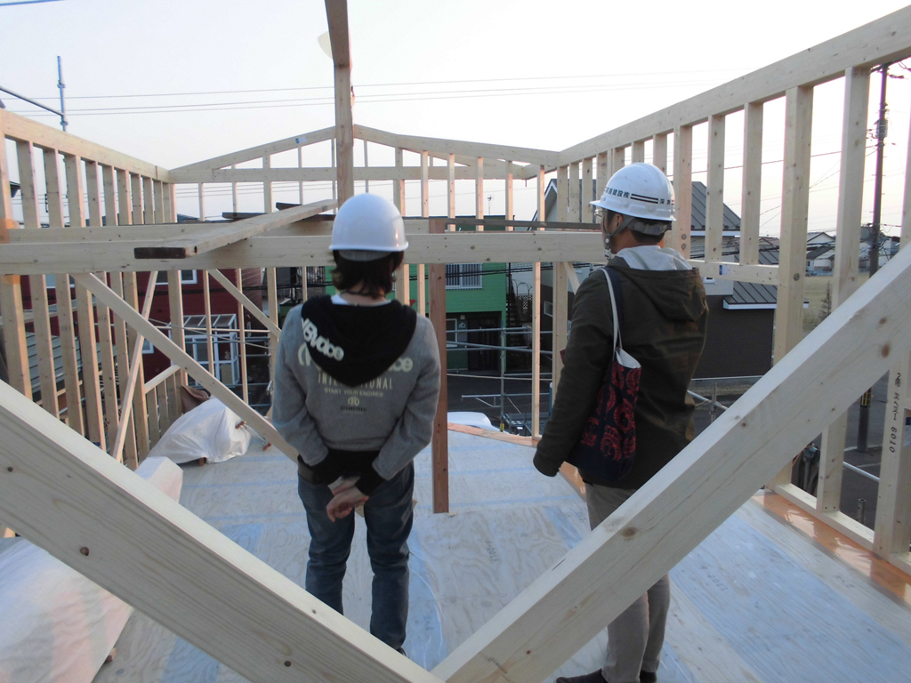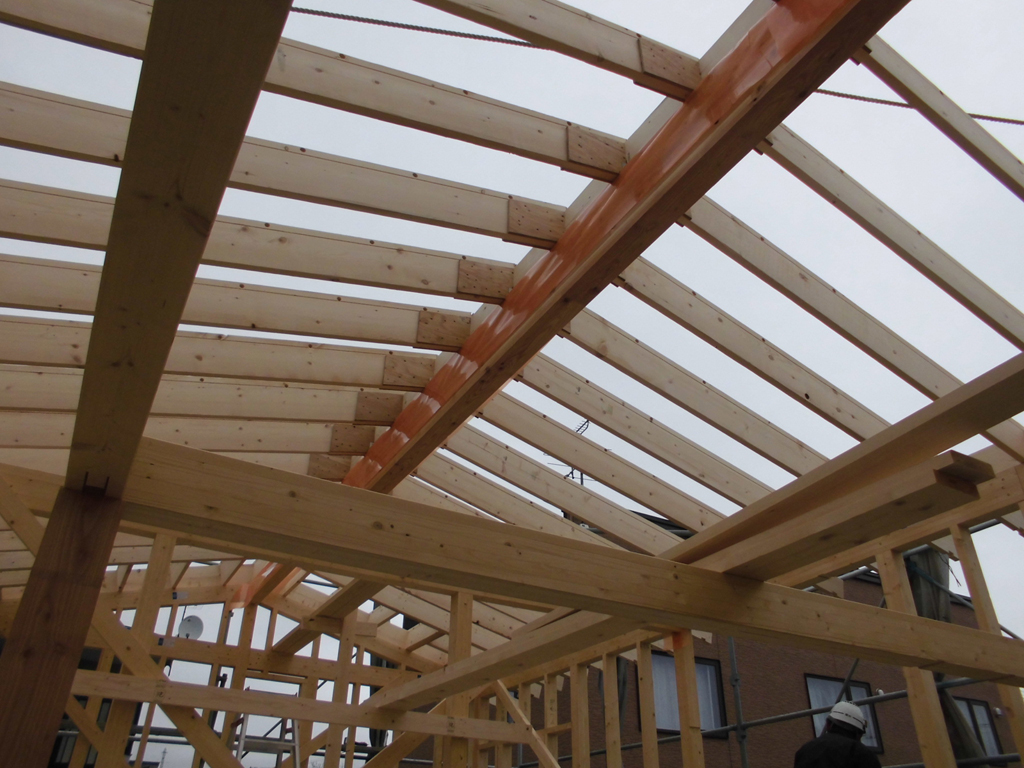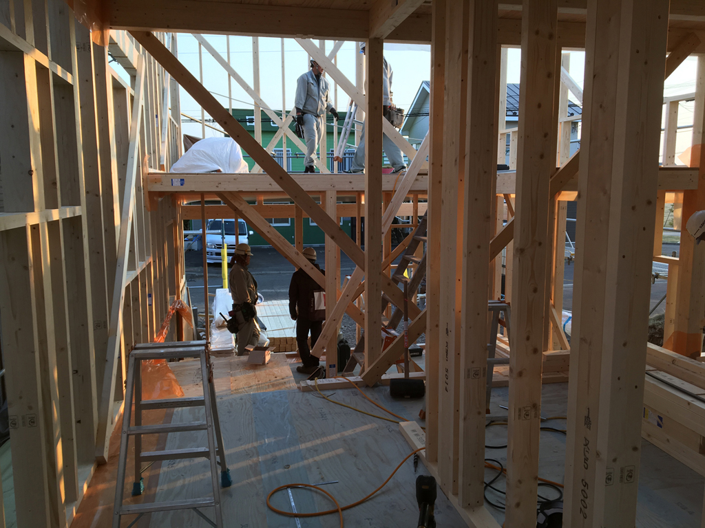 風が強い地域なので、エスキ棟梁と面密な打ち合わせのうえ、強固に造りました!<(`^´)>