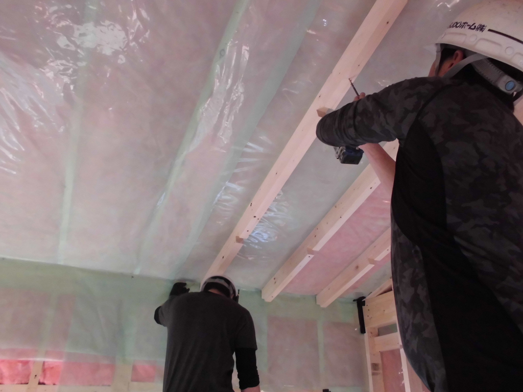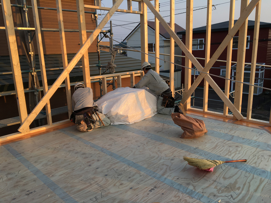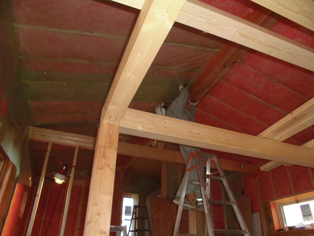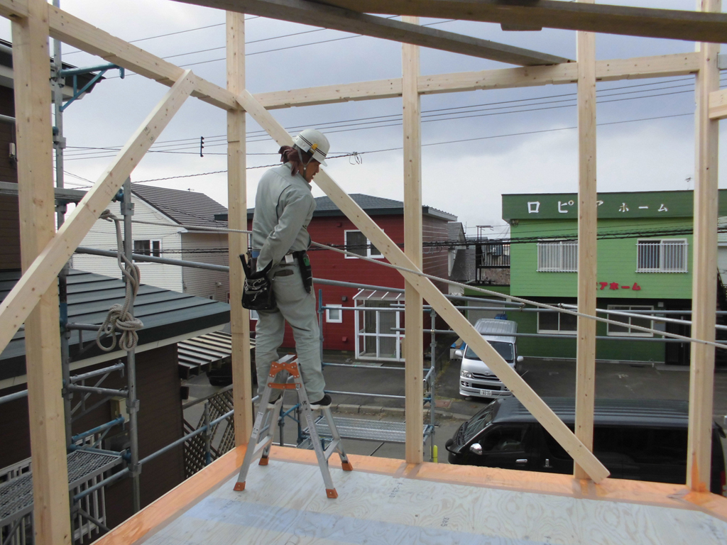 風が強い地域なので、エスキ棟梁と面密な打ち合わせのうえ、強固に造りました!<(`^´)>