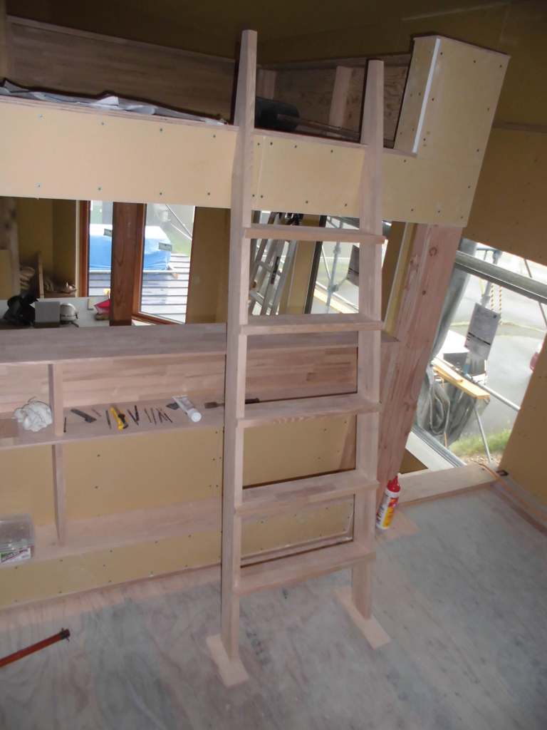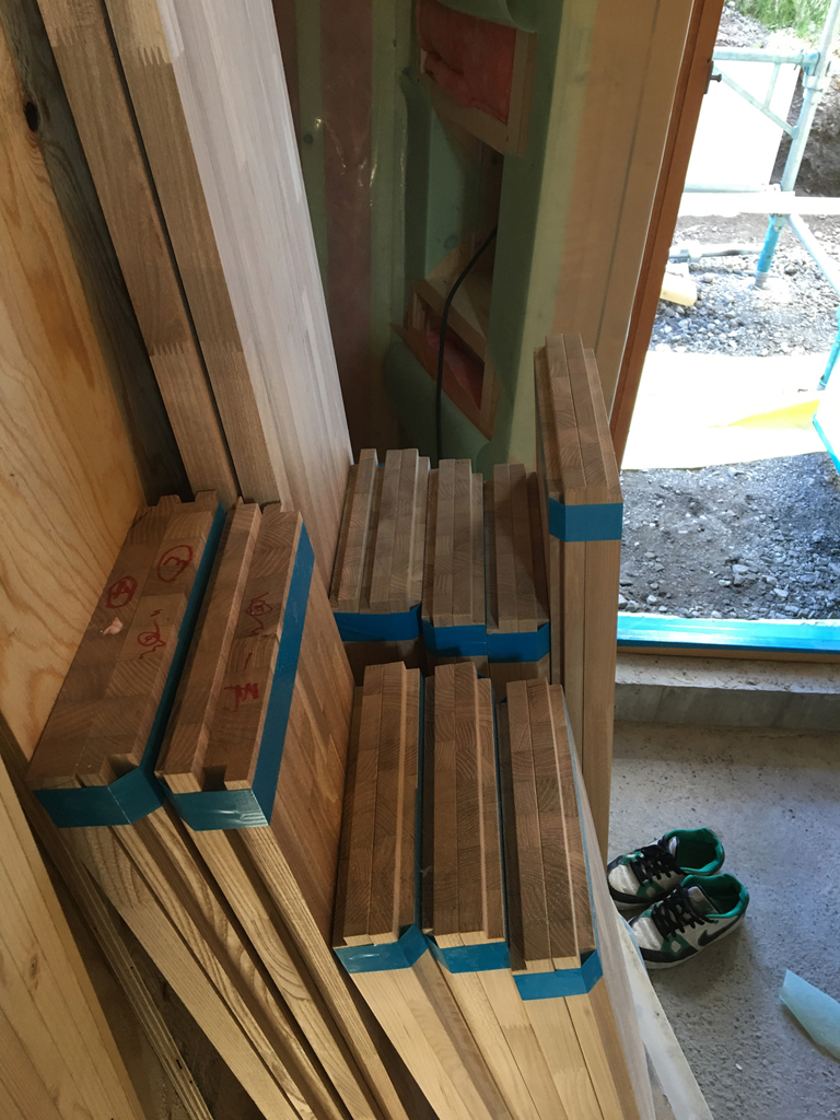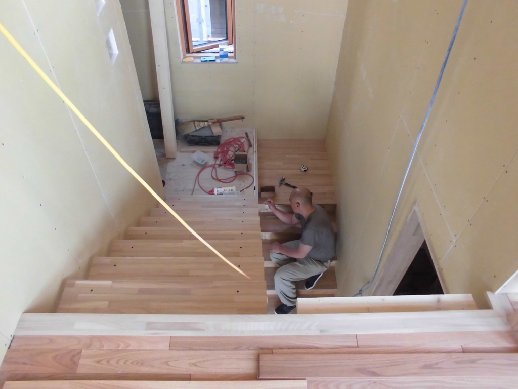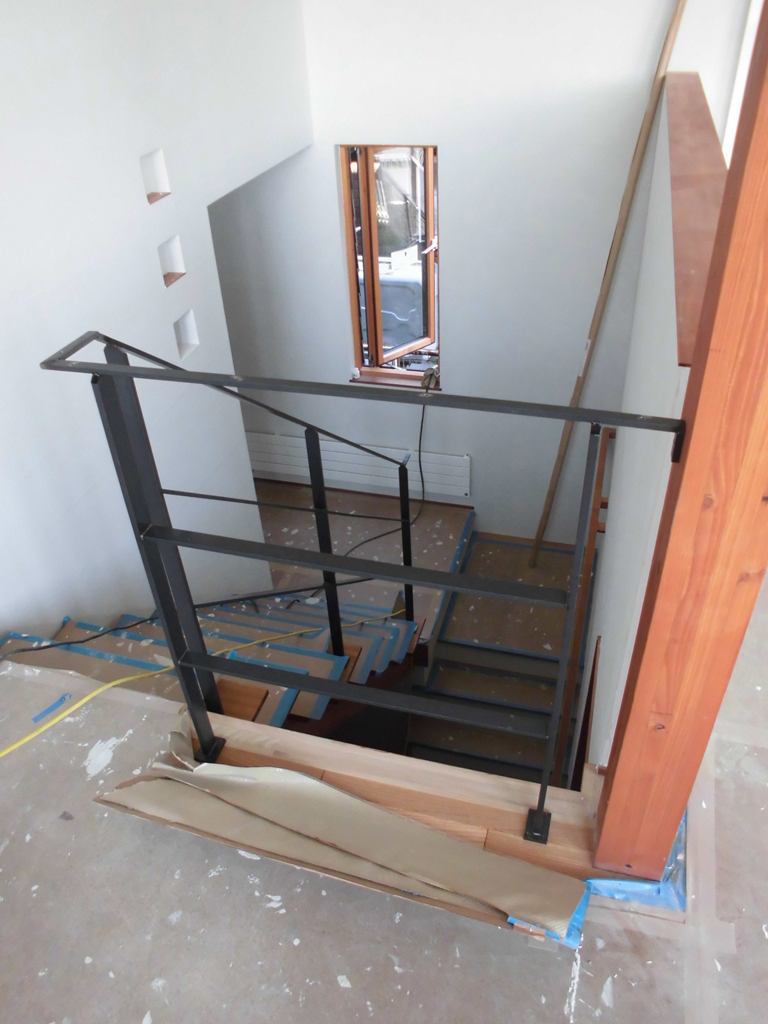 内部階段の手摺りが取り付けられ、この後に楕円状の笠木がつきます。