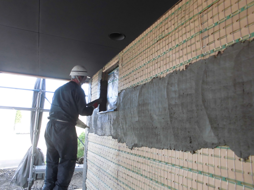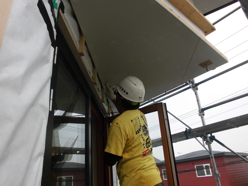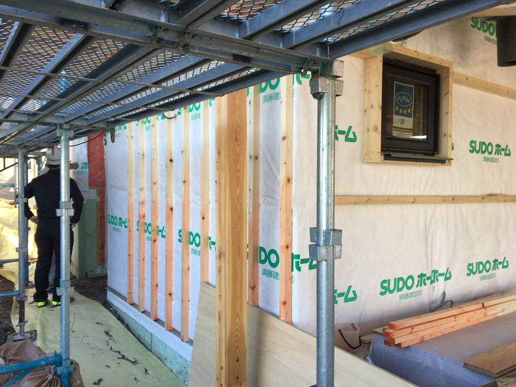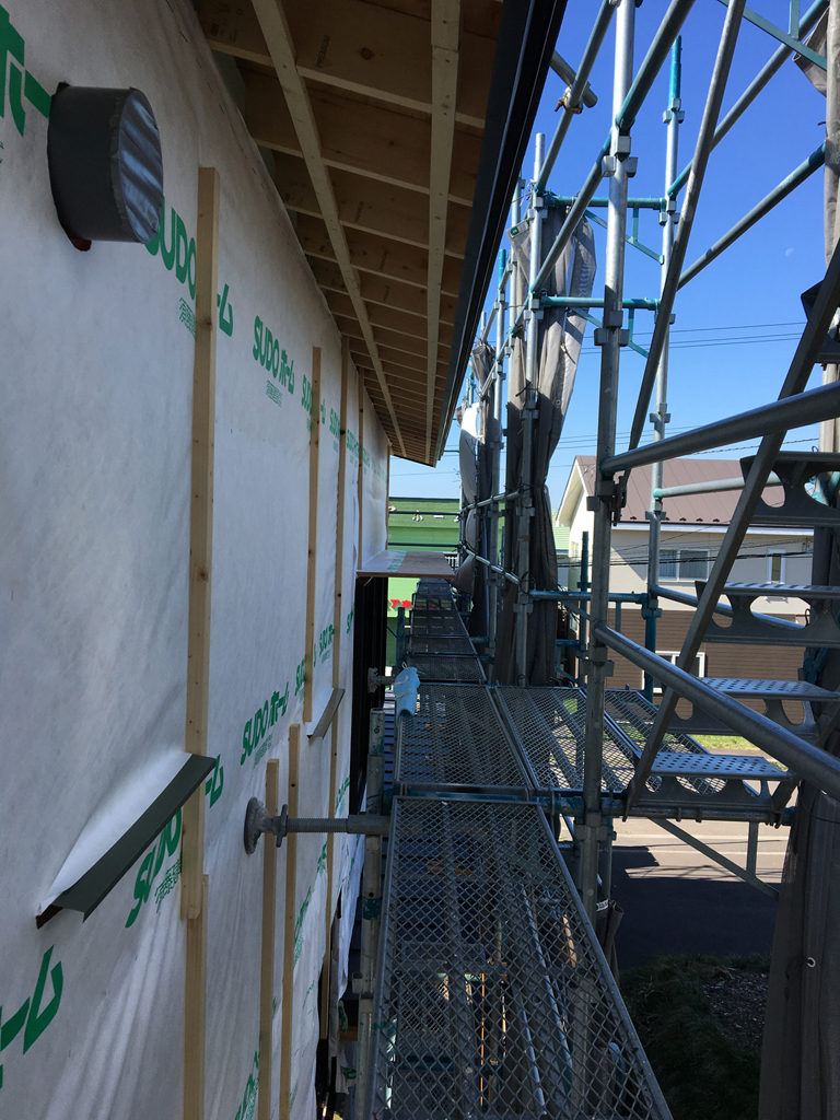 外壁のモルタルを仕上げる為、左官屋さんが目地棒を取り付け仕上げに取り掛かれるように、この日は現場を後にしました。