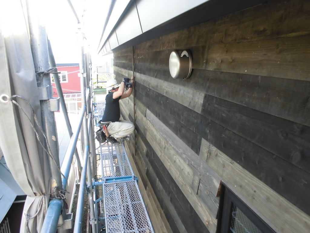 SUDOホームでは中間時と竣工時の2回以外にも、高所については足場があるときに随時目視にて検査を実施しています。
