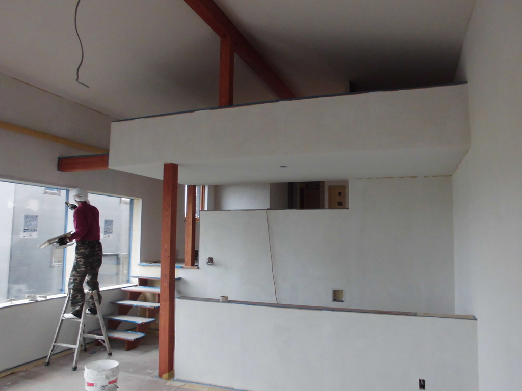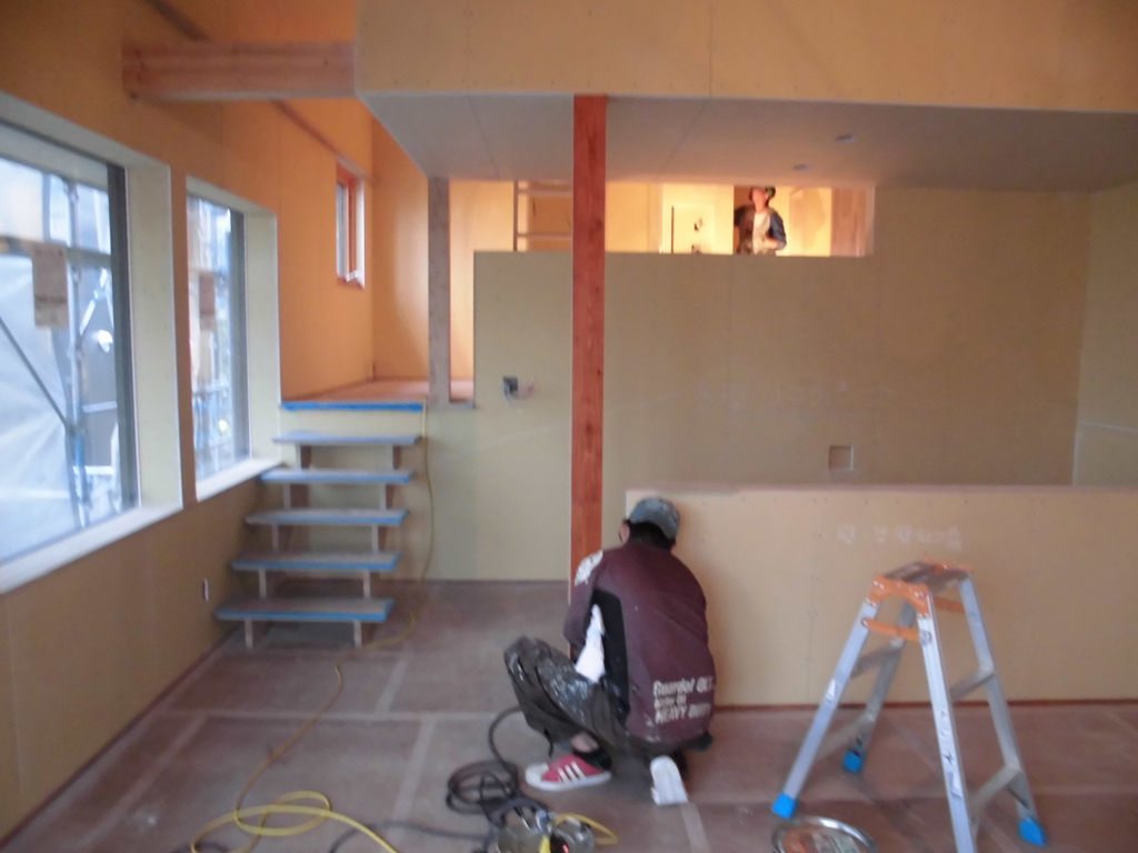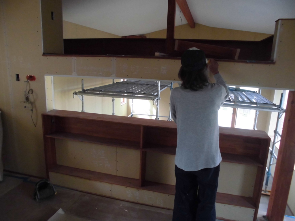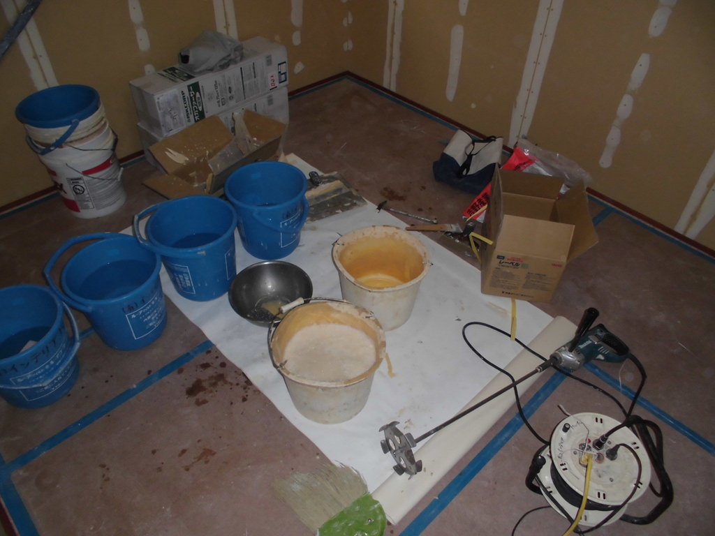前回から引き続き仕上げ工事・・・お次は左官屋さんです。