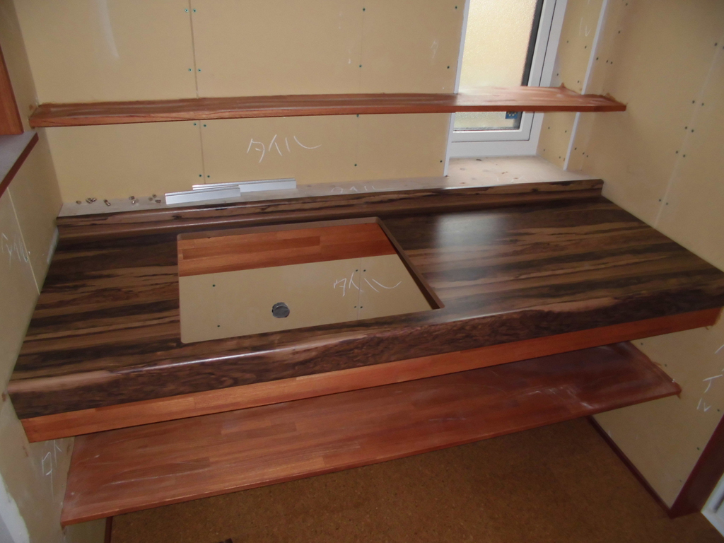 吊り戸棚表面の木目調はニレ集成材とマッチしていますね(*^^)v
