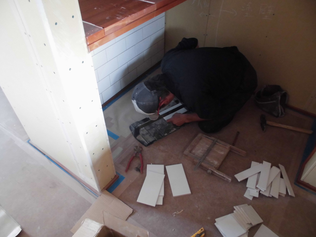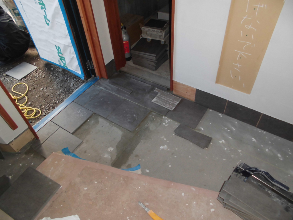 タイル屋さんは最後に玄関タイルを仕上げ、現場を抜けていきました。