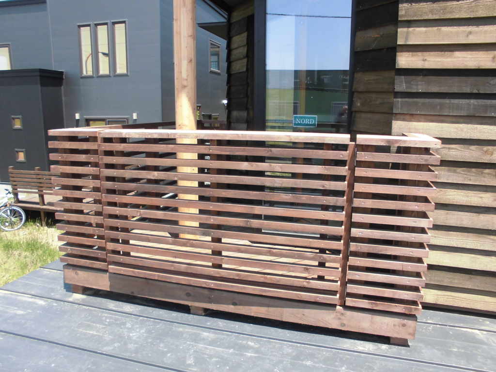 人気の道産カラマツ木酢液含浸板の色幅が、独特の雰囲気を醸し出していますね!!
