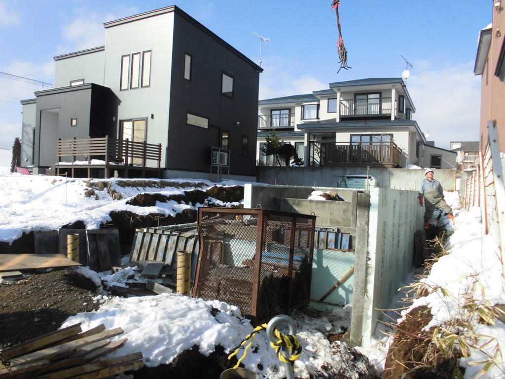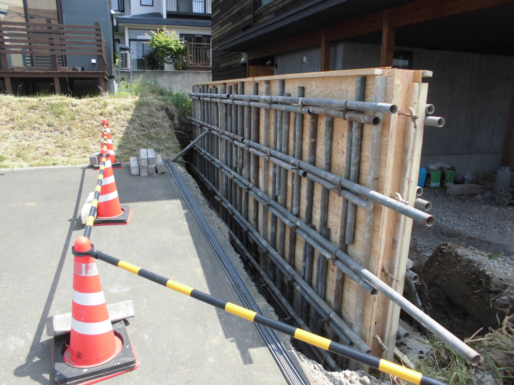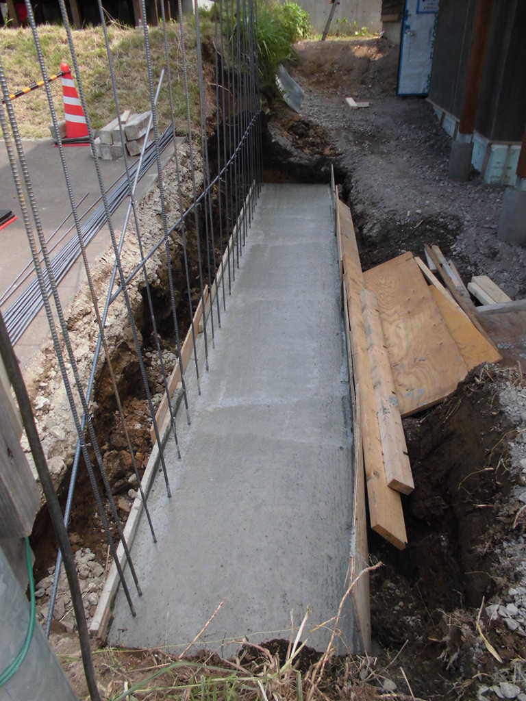 Fかせ専務が前回言ってました塀ですが、パース(スケッチ)通りコンクリート擁壁打ち放し仕上げになりますので、工事状況を一気にご紹介します!