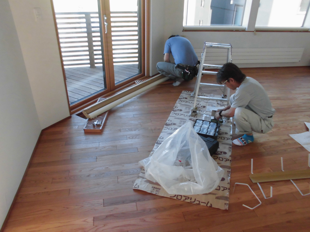 その頃内部では設備屋さんと電気屋さんが来ていました。
