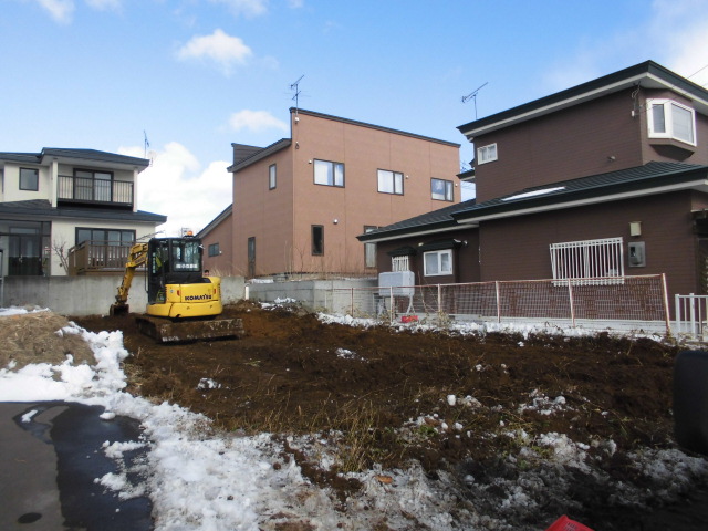 着工に先立ち除排雪と表土めくりをしています。