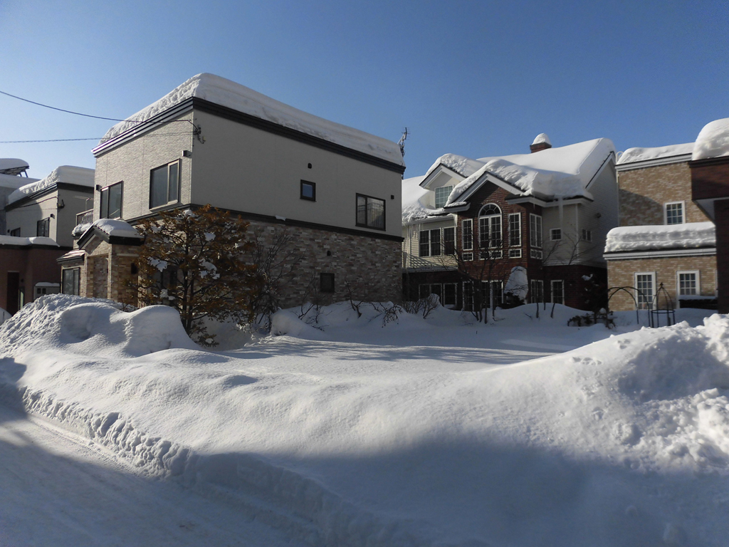 冬、土地を見る時、特に意識するのは道路の除雪状況や周りの建物の状況と屋根の雪です。