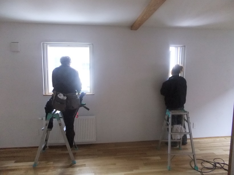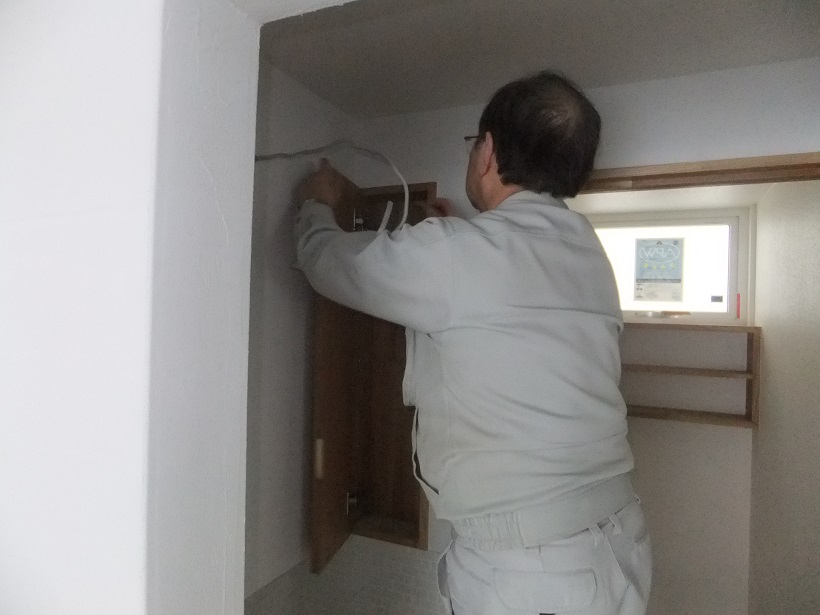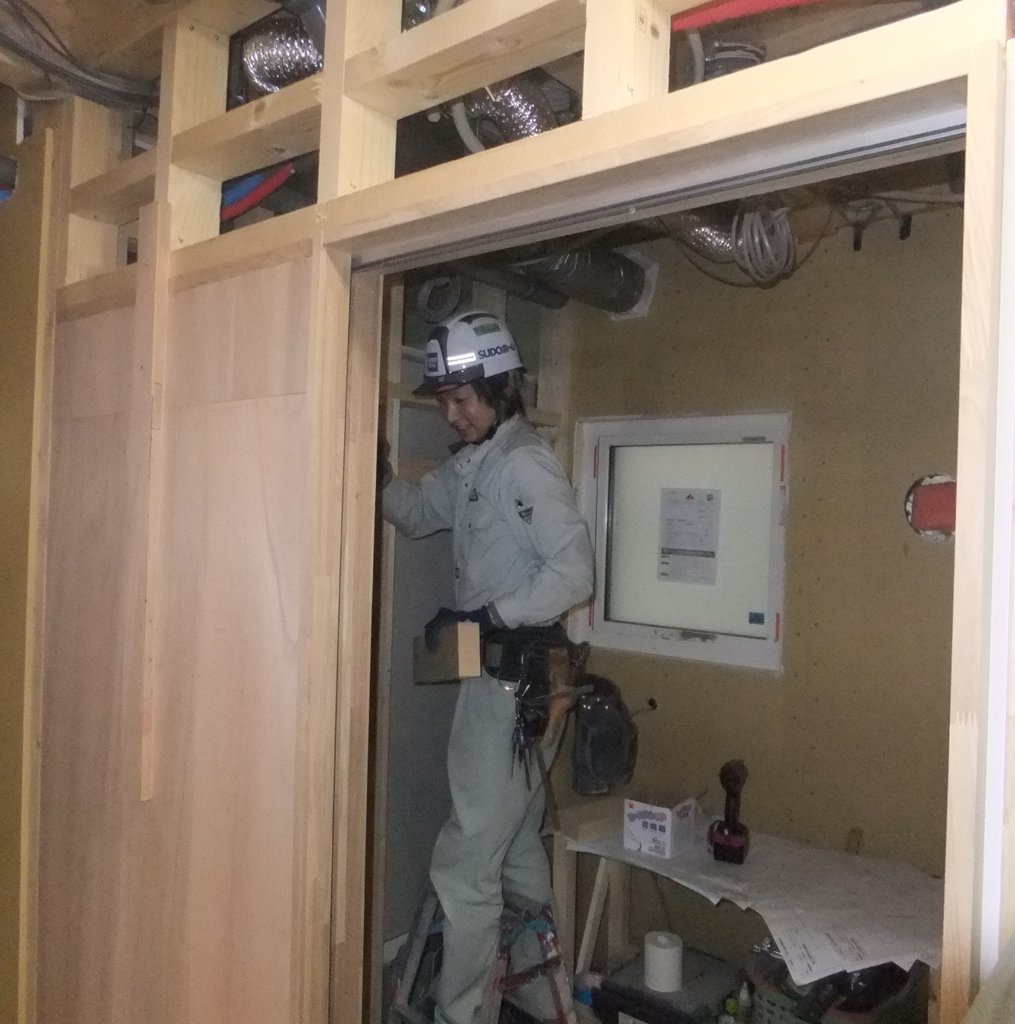 塗り壁が終わると建具や電気設備器具の取り付けを行っていきます。
