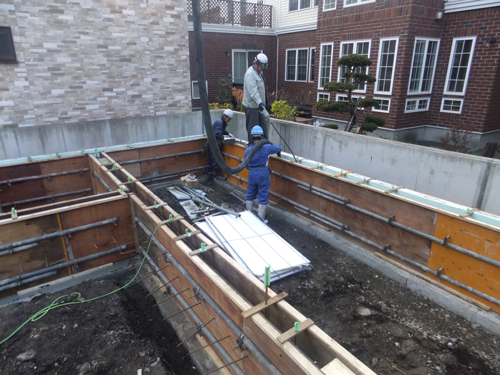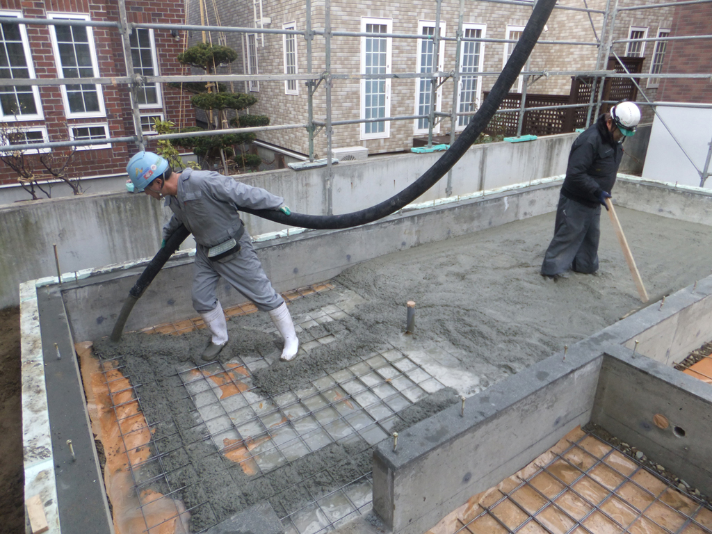 ホースでコンクリートを流し込んでいきます。