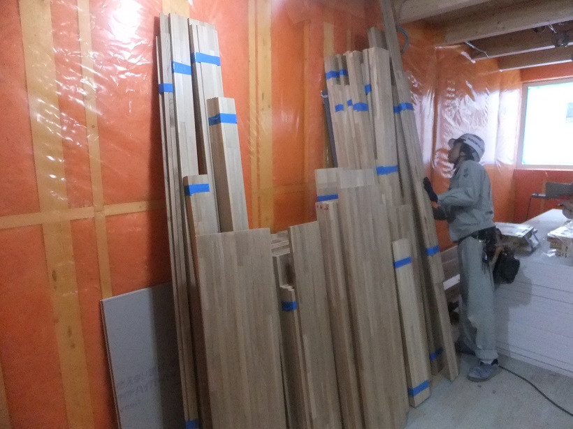 前回現場に入ったフローリングを早速張っていきます。