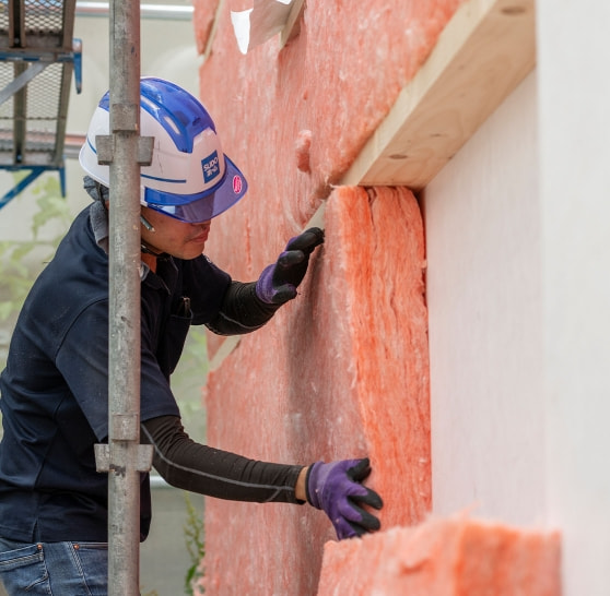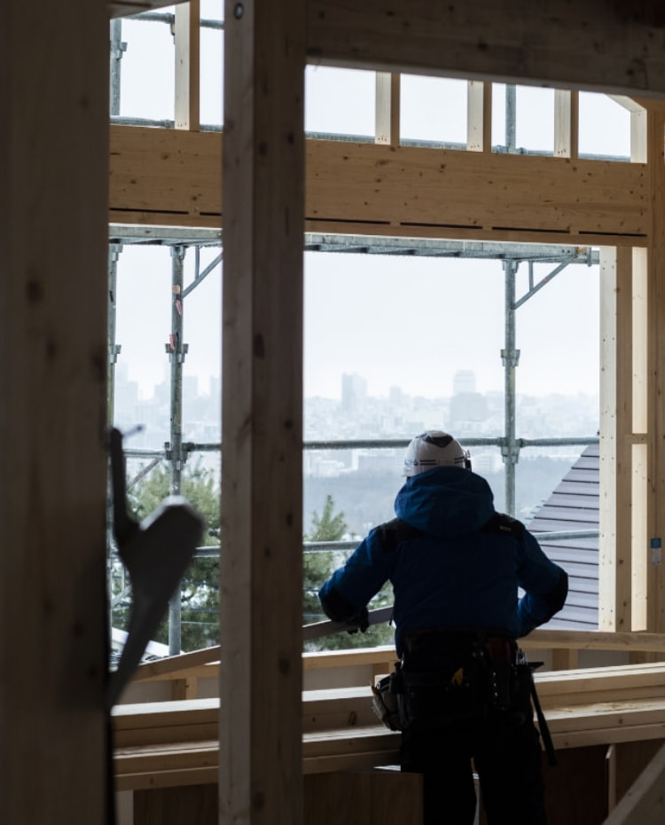 - 家づくりの長い工期の中で、一番長く現場に関わるのが大工です。大工はいつの時代も家づくりの主役といえる存在。自由設計における多様な間取りでも高断熱・高気密といった性能を確保するためには、特に完成後見えなくなる部分の技術の高さが求められます。断熱材の充填方法による性能への影響を理解しながら臨機応変に対応する断熱工事の技術や、気密シートを隙間なく施工する気密工事の技術をご提供できるのは、知識と経験を重ねた自社大工だからこそ。社内で技術情報を共有し継承していくことで、より一層の安心と満足をお届けします。