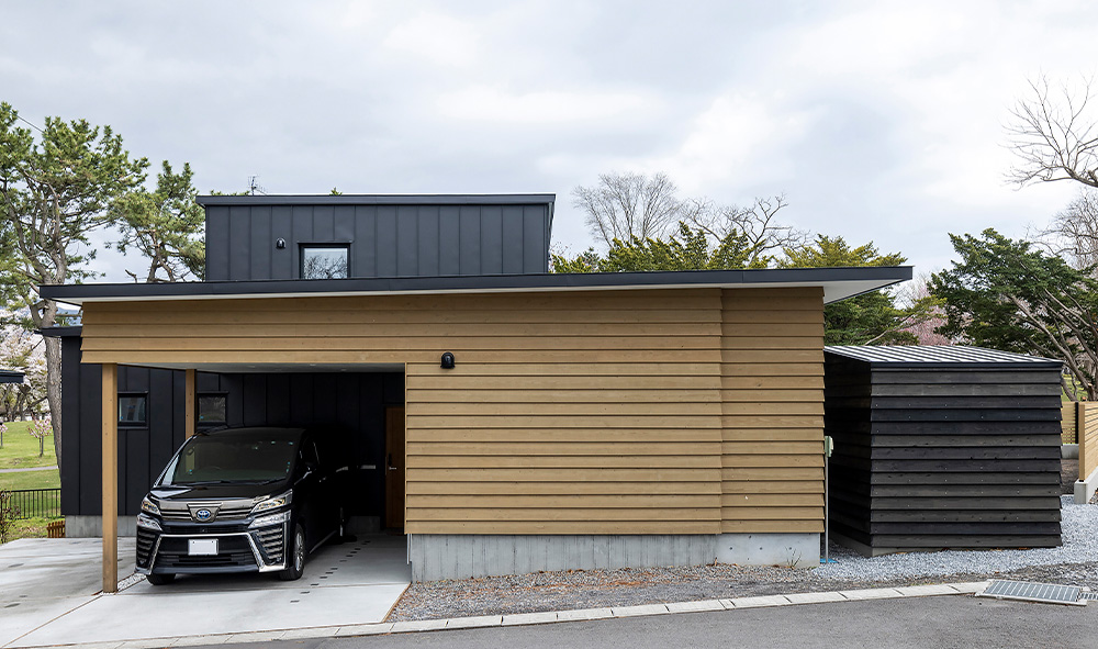 屋根/ガルバリウム鋼板、外壁/ガルバリウム鋼板・道産スギ板張、建具/玄関ドア:断熱ドア、窓:木製サッシ・樹脂サッシ