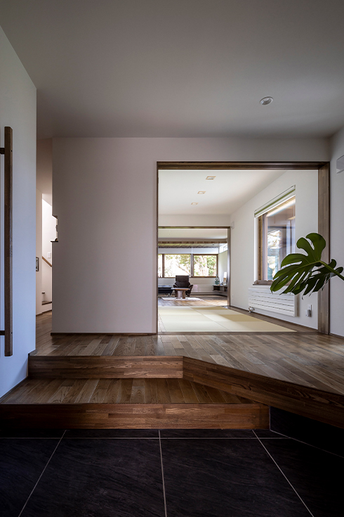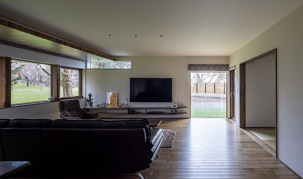 数年前にご両親が伊達市街地に引っ越したことから、Sさんご一家も仕事上便利な伊達の市街地で暮らすことを考え始めたそう。Sさんが希望したのは、それまでと同様ののびのびとした暮らし。希望どおりの場所を市街地で見つけるのは大変なことでしたが、自身で探し歩き、ついに高台の南端、東側が公園に隣接という絶好のロケーションの土地を手に入れることができました。