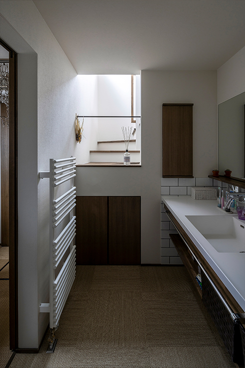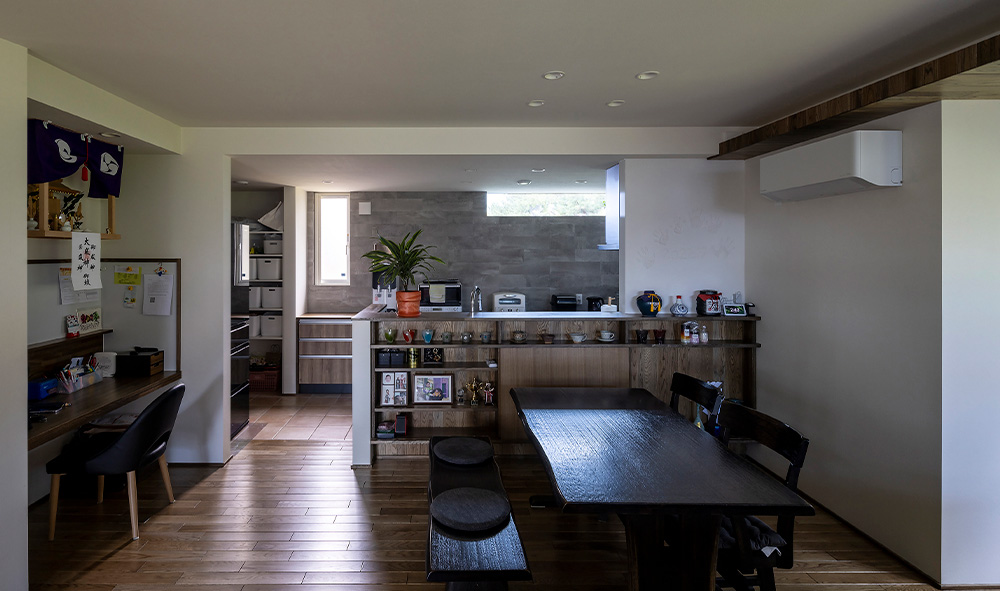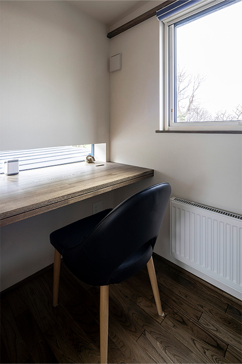 Sさんの家づくりのモチベーションのひとつが、子どもたちに自分の部屋を持たせてあげたいということでした。自分たちが年齢を重ねてからのことを考え当初は平屋を考えていましたが、知人宅でヒントを得て、子ども部屋のみを2階にすることに。生活自体は水まわりや寝室のある1階で完結するようになっています。