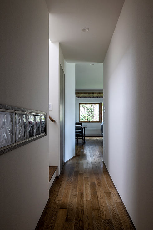 家づくりもこの立地を生かすことから考えました。大きな特徴は公園に面した4連の窓。借景の公園の緑がまるで絵画のようです。外からの視線は薄く色がついた窓ガラスを採用することで対策。家の中を見ようとしても鏡のように風景を反射するので、まったく視線を気にせずに暮らせているとSさんご夫妻は話します。