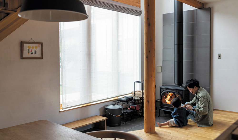 そう語るMさんは4年前の結婚を機に早速、家づくりを開始しました。希望するエリア内で土地を探しながら、施工会社を検討。10数社の中から、リプランの記事で目に留まったSUDOホームを家づくりのパートナーに選択しました。「決め手になったのは、自然素材の良さを生かした空間とデザイン性。そして何より薪ストーブのある家を多数建築しているという、豊富な実績に安心感を覚えました」。