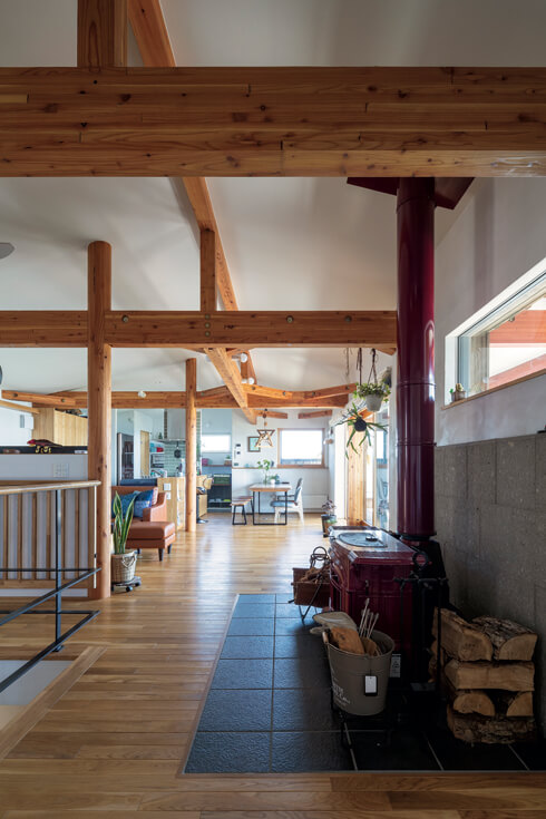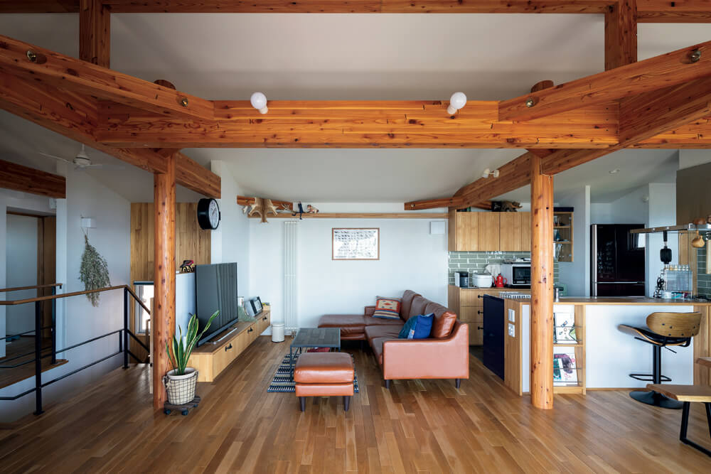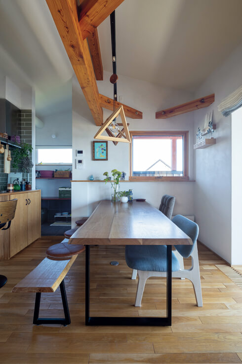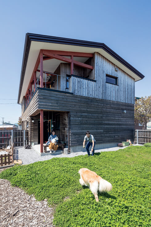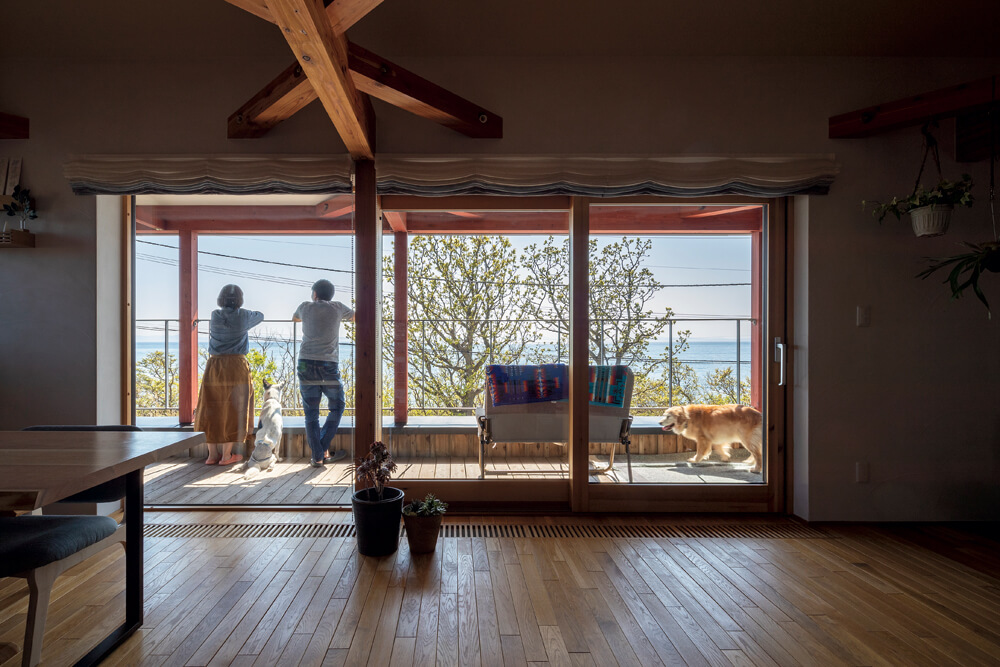 2頭の愛犬と海や緑を感じられる暮らしを。そう考え、土地探しからSUDOホームにお願いしていたYさんご夫妻が手に入れたのは、噴火湾を見下ろす角地。当初は平屋で検討していましたが、同社の工藤啓一さんからの提案を受けて、眺望を生かすため2階建てとし上階にリビングを据えることに。対岸に渡島半島を望む、開放感抜群の空間となりました。