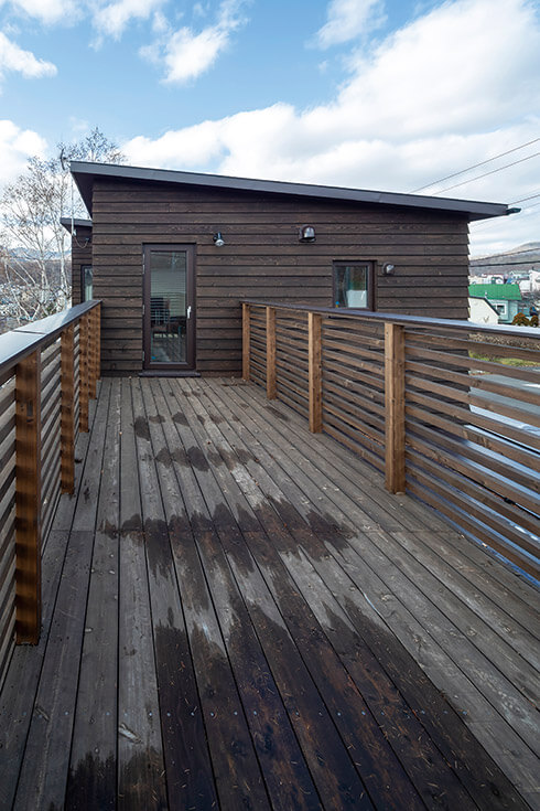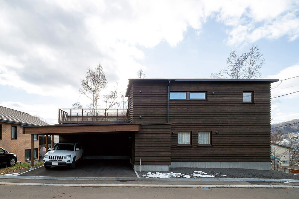 屋根/ガルバリウム鋼板、外壁/道南スギ板張、建具/玄関ドア:木製断熱ドア、窓:木製サッシ・樹脂サッシ