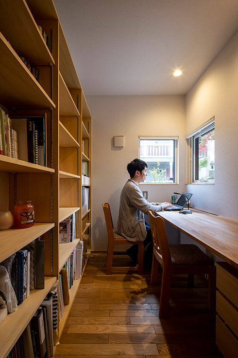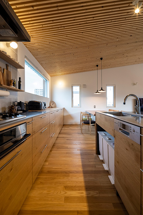 毎週のようにオープンハウスを見学し、SNSや雑誌なども参考にしていたという勉強熱心なTさんご夫妻。そのかいあって、素材やディテールなど細部までこだわりが垣間見えます。中には職人泣かせの仕様もありましたが、自社大工ならではの高い技術力を生かした手仕事で、隅々まで申し分のない仕上がりとなっています。「大工さんが本当に素晴らしく、納まりや細かな仕上げまで計算して、きっちりといい仕事をしてくれました。作業中でも現場はきれいに整頓されていて信頼できましたね」。
