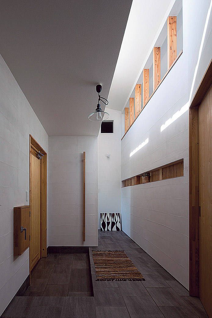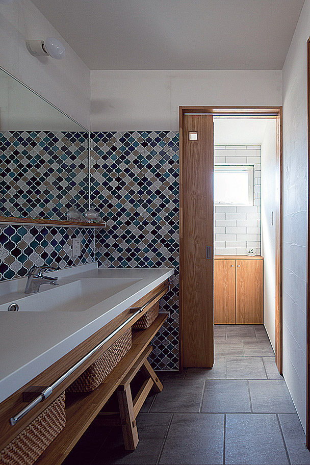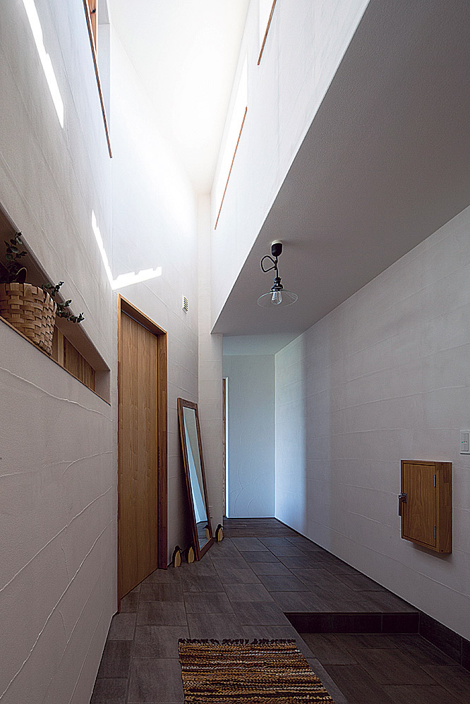 床/道産ニレ無垢材・タイル、壁/珪藻土入塗壁、天井/珪藻土クロス