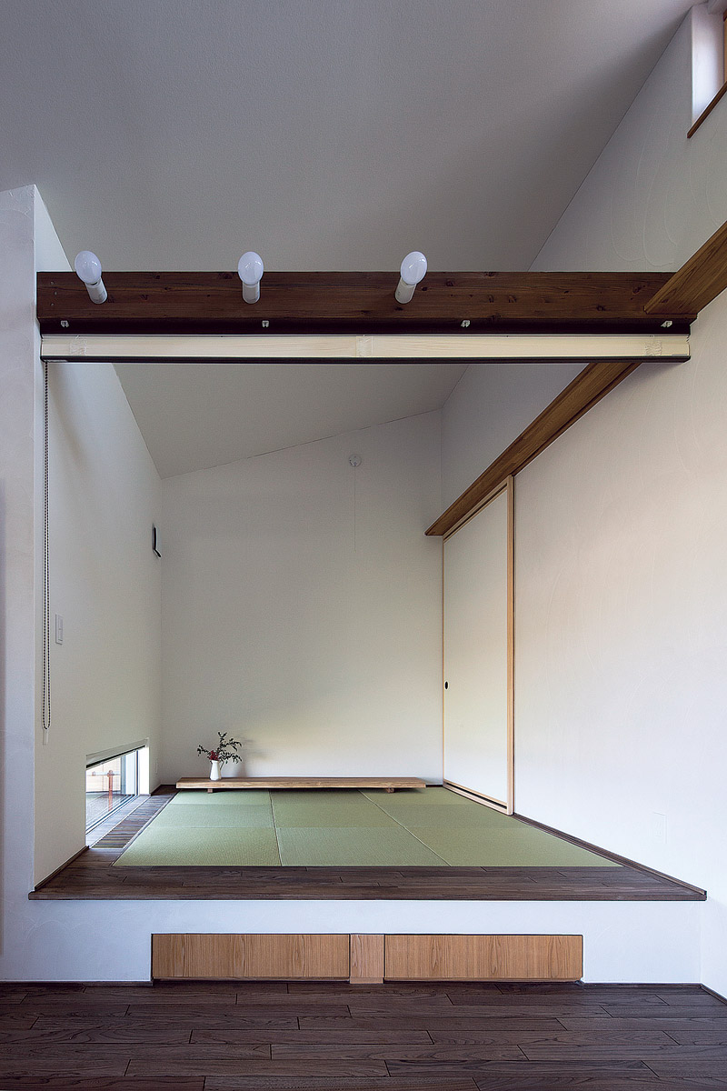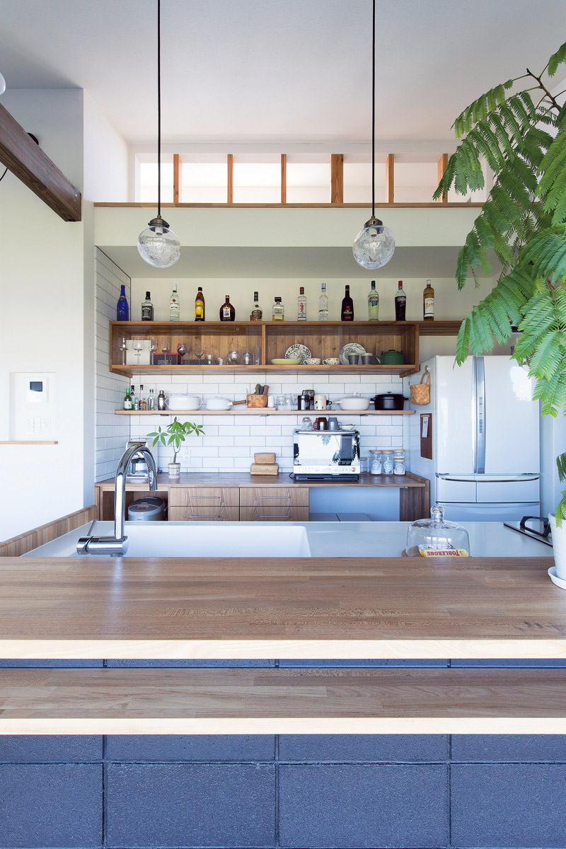 小上がりやスキップフロアのライブラリーなどで一室大空間のLDKを適度にゾーニングしています。暮らしの中で心地よい距離感を保てる、そんな空間に仕上げたオーシャンビューの住まいです。